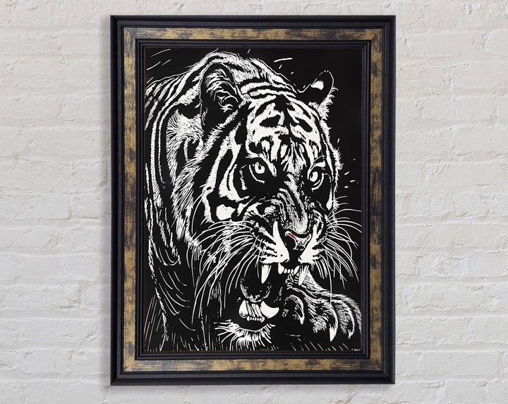 Introducing the Lino Tiger Print Framed Print, a stunning piece of framed art that will add a bold touch to any room. This eye-catching print features a detailed tiger design, perfect for animal lovers and those looking to make a statement. Available in six sizes, from small to oversized, you can find the perfect fit for your space. Choose from a variety of colors to match your decor. Each print is handmade with care in the United Kingdom, ensuring high quality and uniqueness. Ready to hang, this framed art is a hassle-free way to enhance your home or office. Elevate your interior with the Lino Tiger Print Framed Print today!