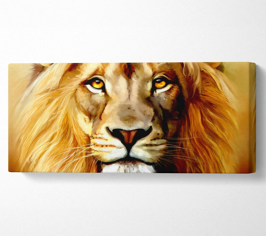 Löwenkopf-Leinwand, gedruckt auf beschichteter Polyester-Leinwand. Auf einem 44 mm großen Kastenrahmen montiert, fertig zum Aufhängen.