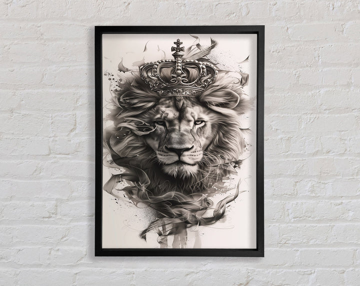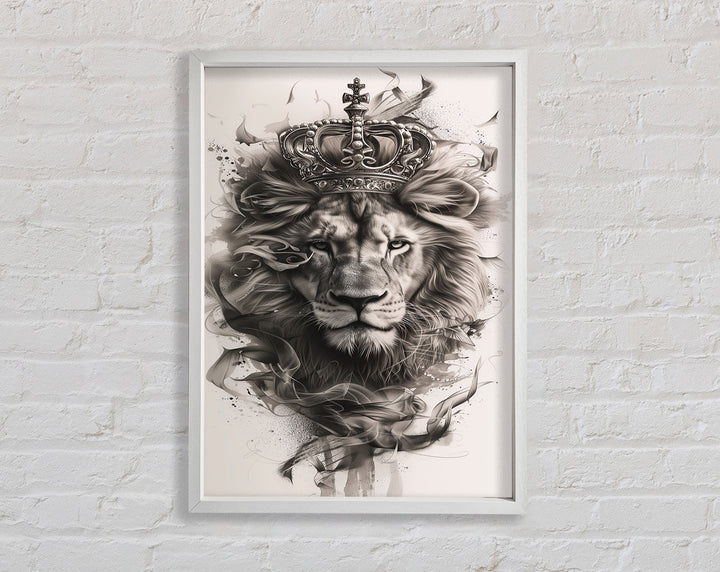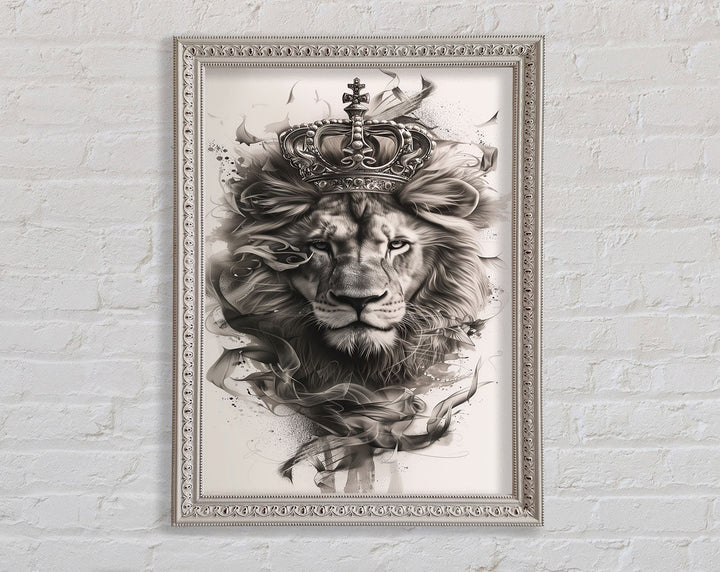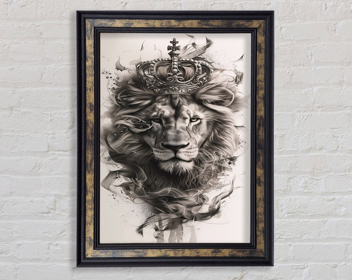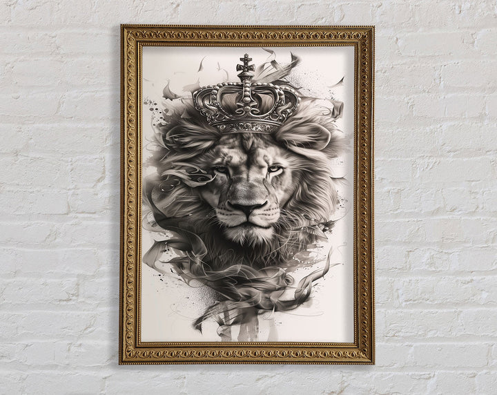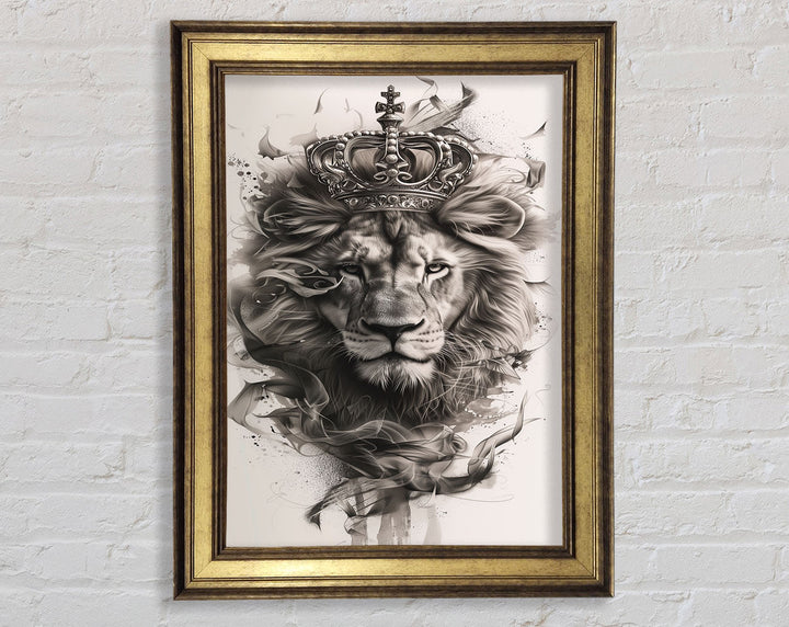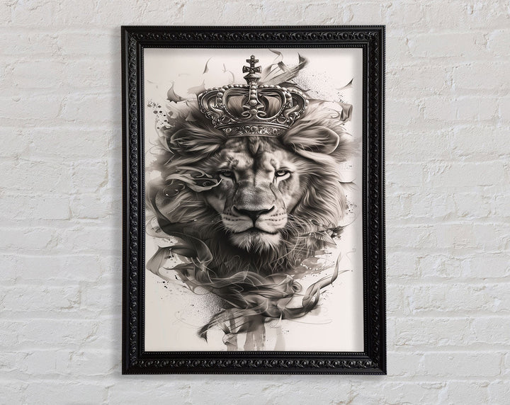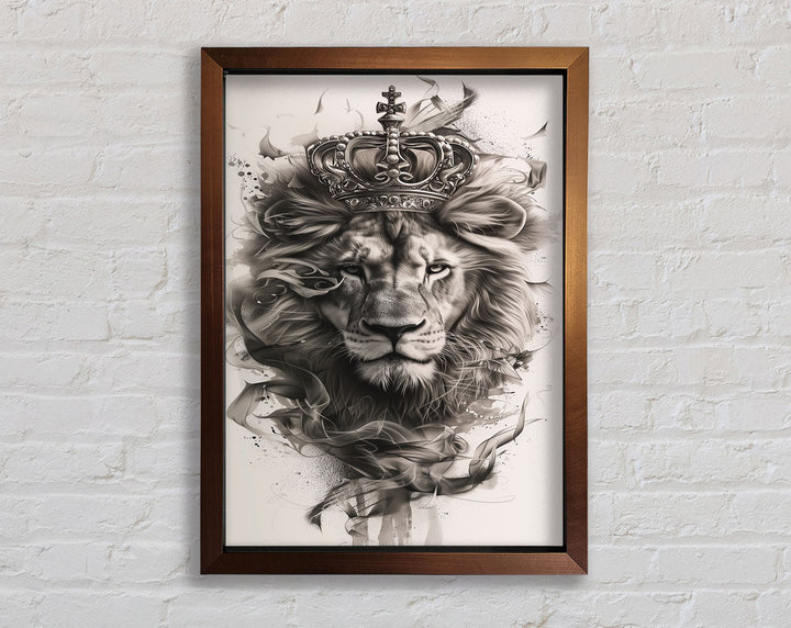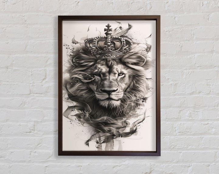Introducing the stunning Lion With A Crown Framed Print, a majestic piece of framed art that adds a touch of royalty to any room. This exquisite artwork features a powerful lion wearing a regal crown, symbolizing strength and nobility. Available in six sizes, from small to oversized, you can find the perfect fit for any space. Choose from a variety of colors to match your décor seamlessly. Handmade in the United Kingdom, each piece is crafted with meticulous attention to detail. Ready to hang, this framed print makes it easy to elevate your home or office instantly. Embrace elegance and sophistication with this remarkable piece of framed art.