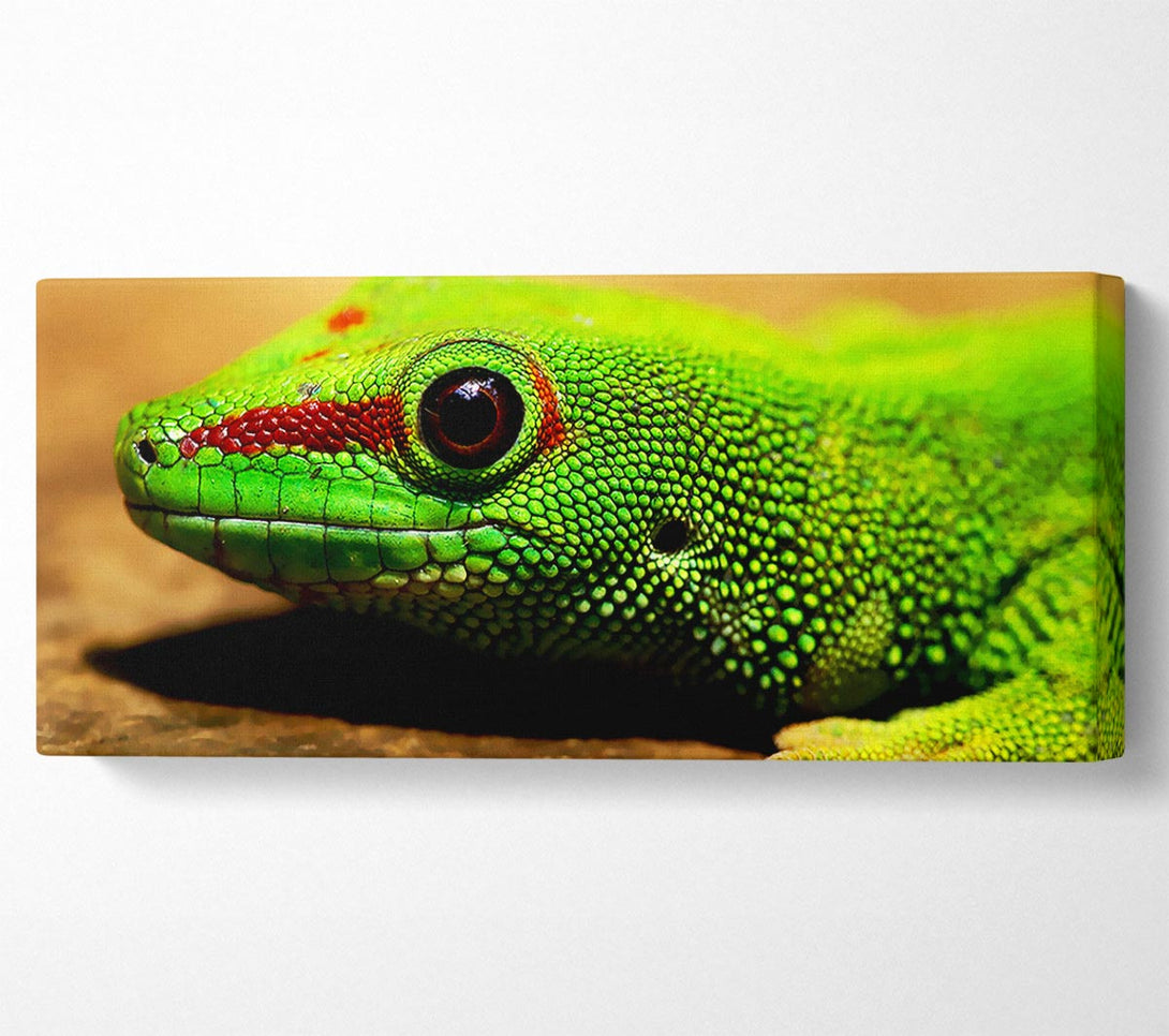 Leinwandbild „Eidechsengesicht“, gedruckt auf beschichteter Polyester-Leinwand. Auf einem 44 mm großen Kastenrahmen montiert, fertig zum Aufhängen.