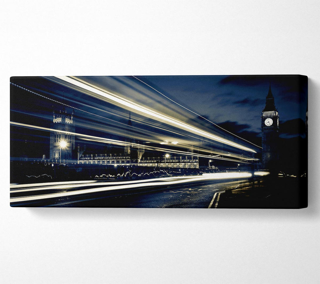 Leinwandbild „London Blue Nights“, gedruckt auf beschichteter Polyester-Leinwand. Auf einem 44 mm großen Kastenrahmen montiert, fertig zum Aufhängen.