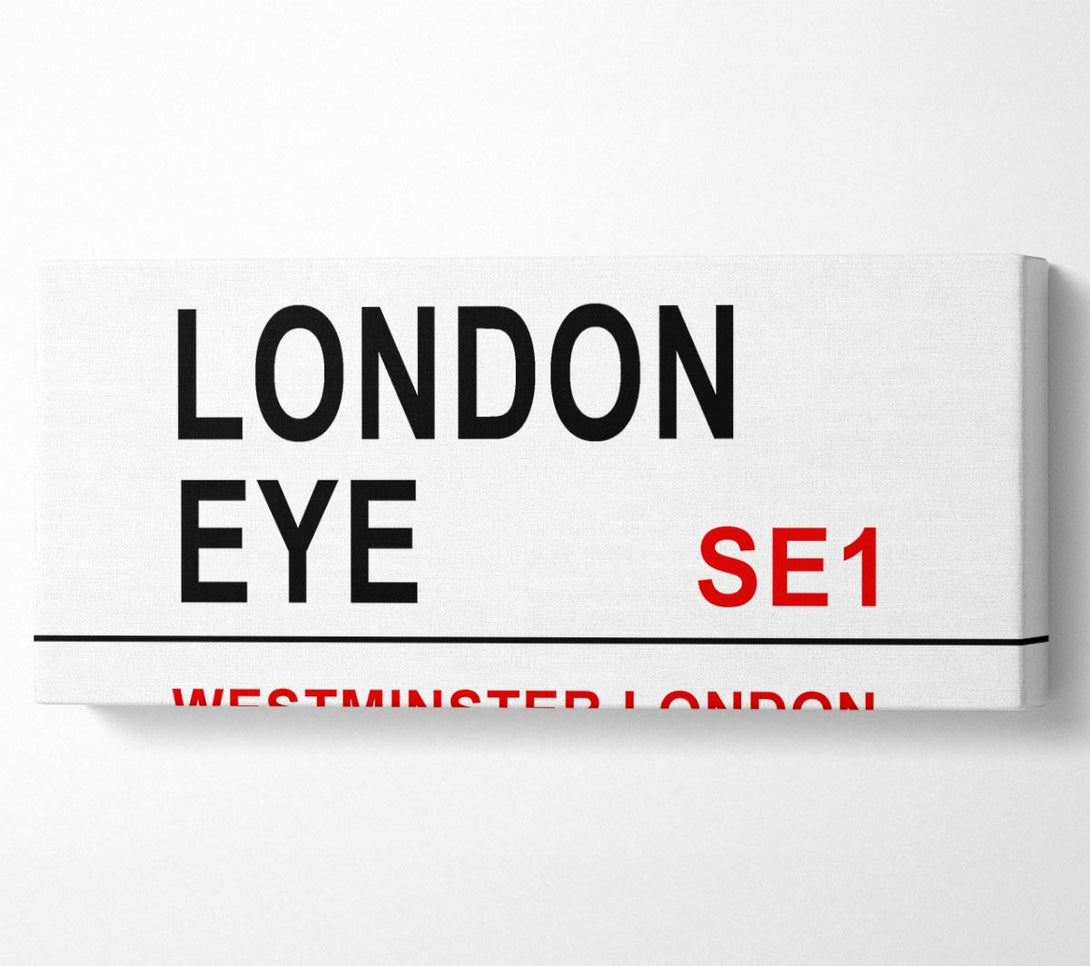 Leinwandbild mit London Eye-Schildern, gedruckt auf beschichteter Polyester-Leinwand. Auf einem 44 mm großen Kastenrahmen montiert, fertig zum Aufhängen.
