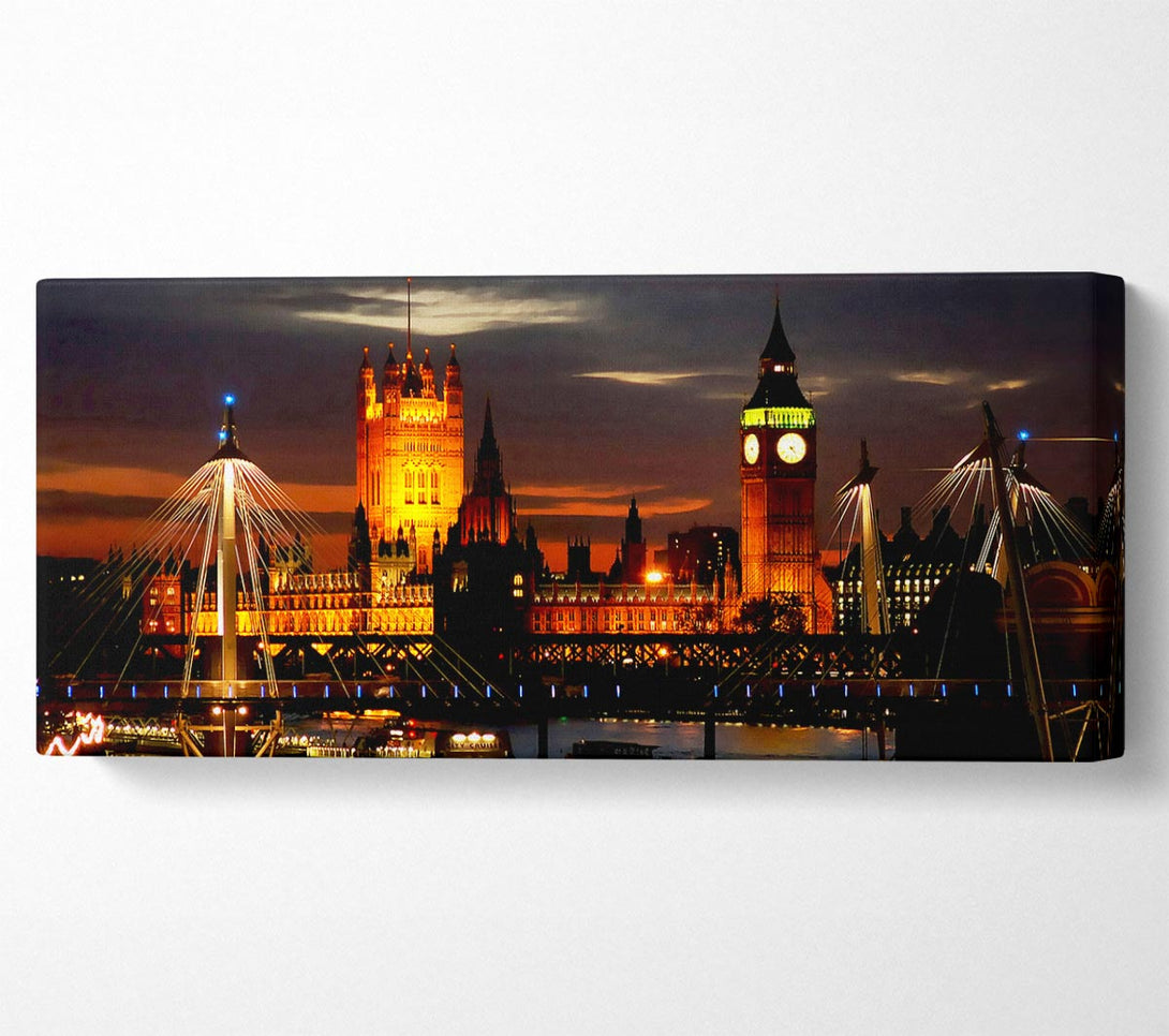 Leinwandbild „Houses of Parliament Lights“ in London, gedruckt auf beschichteter Polyester-Leinwand. Auf einem 44 mm breiten Kastenrahmen montiert, fertig zum Aufhängen.