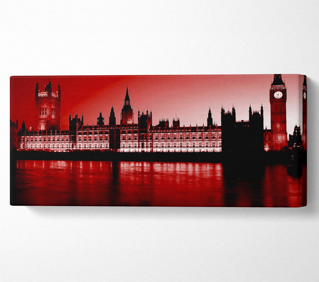Rote Leinwand mit dem Houses of Parliament in London, gedruckt auf beschichteter Polyester-Leinwand. Auf einem 44 mm breiten Kastenrahmen montiert, fertig zum Aufhängen.