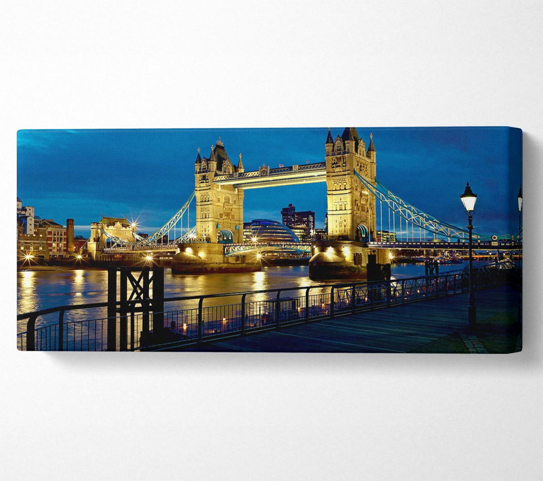 Leinwandbild „London Tower Bridge Nightlight“, gedruckt auf beschichtetem Polyester-Canvas. Auf einem 44 mm großen Kastenrahmen montiert, fertig zum Aufhängen.