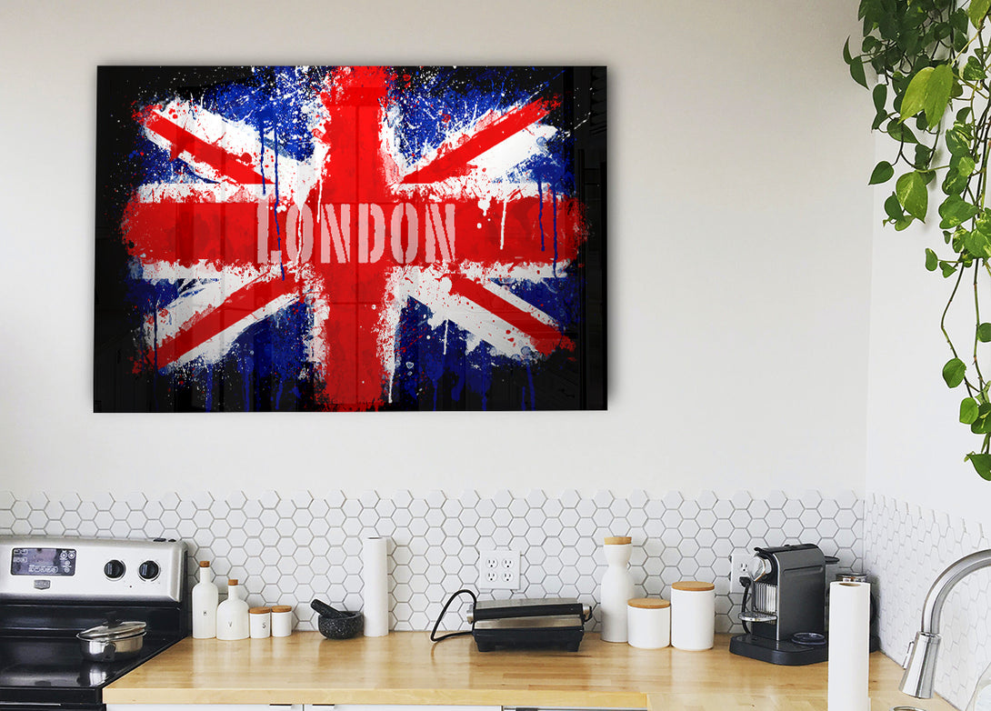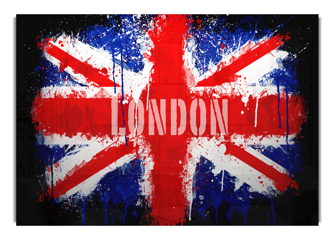 Acryldruck mit London-UK-Flagge, UV-gedruckt auf 5 mm dickes Acrylglas. Wird mit allem geliefert, was Sie zum Aufhängen an die Wand brauchen.