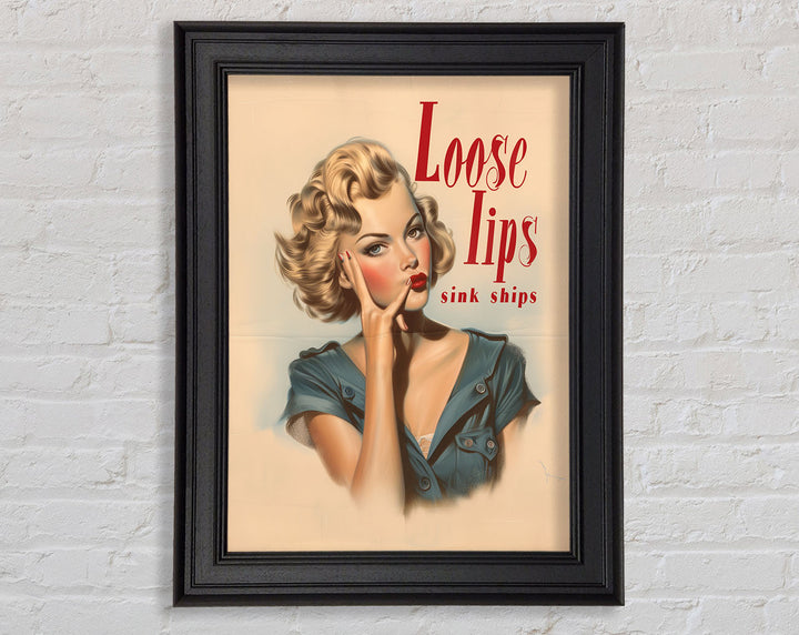Introducing the Loose Lips Sink Ships Framed Print, a stunning piece of framed art that adds a touch of history and style to any space. Handmade in the United Kingdom, this print is available in six sizes, ranging from small to oversized, ensuring the perfect fit for your home or office. The vibrant colors make it an eye-catching addition to any decor. Each print comes ready to hang, making the setup process quick and easy. The high-quality craftsmanship ensures durability and elegance, making it a timeless piece. Elevate your space with this unique, handmade framed art that combines both beauty and meaning.