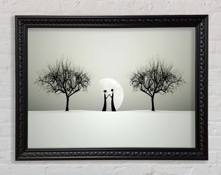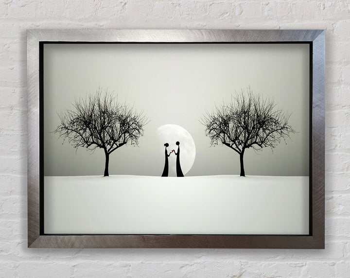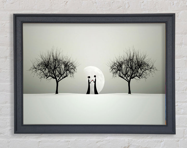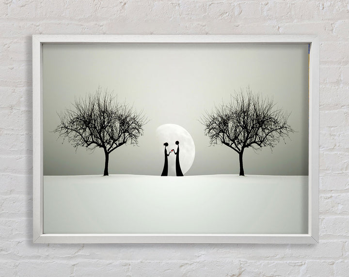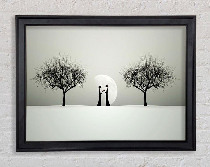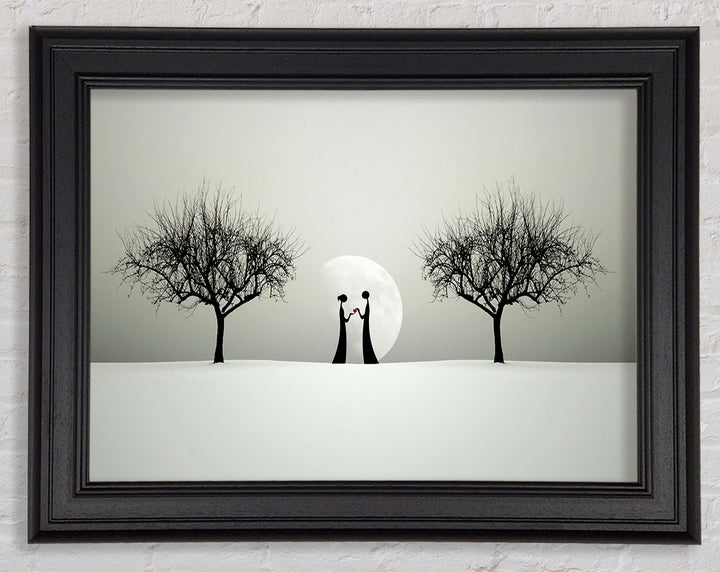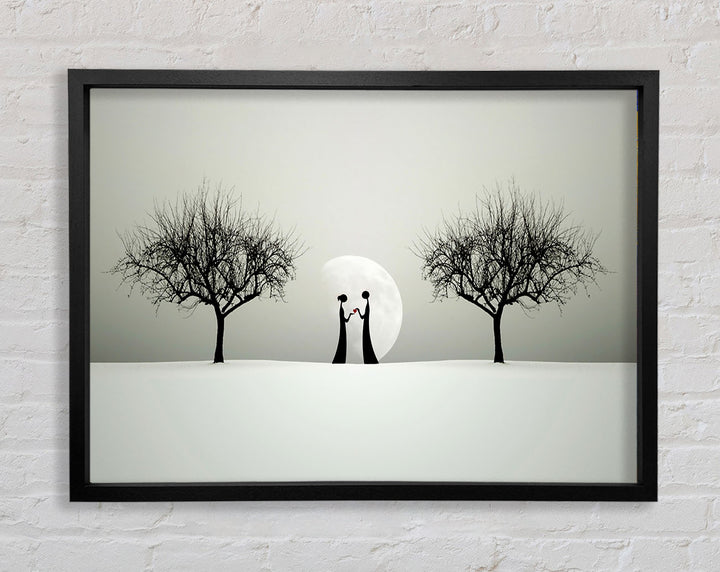 Gerahmter Druck „Love Between The Trees And Moon“, erhältlich in mehreren Rahmenfarben. Fertig zum Aufhängen aus der Schachtel und handgefertigt im Vereinigten Königreich.