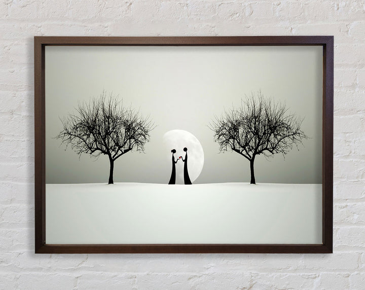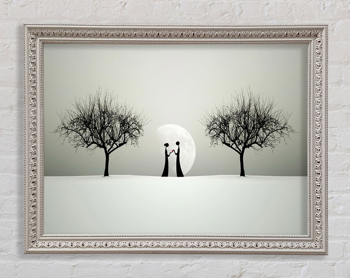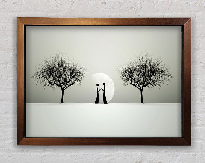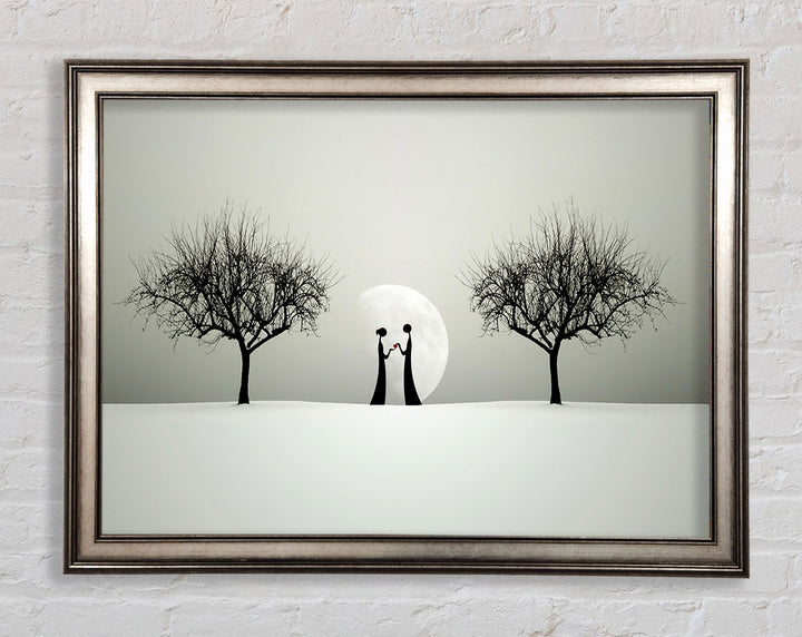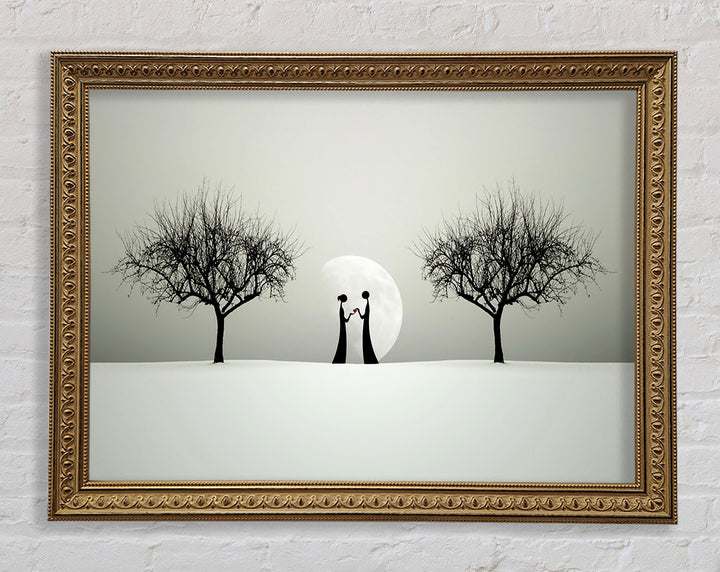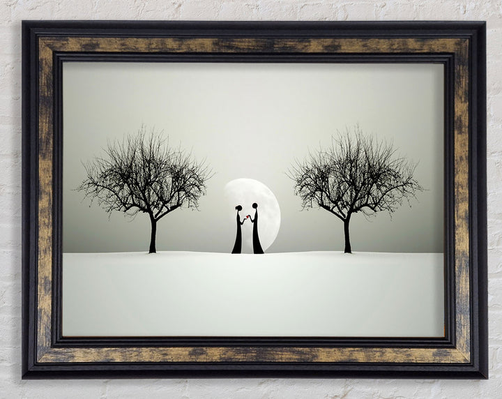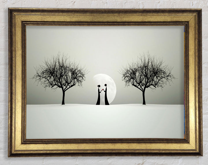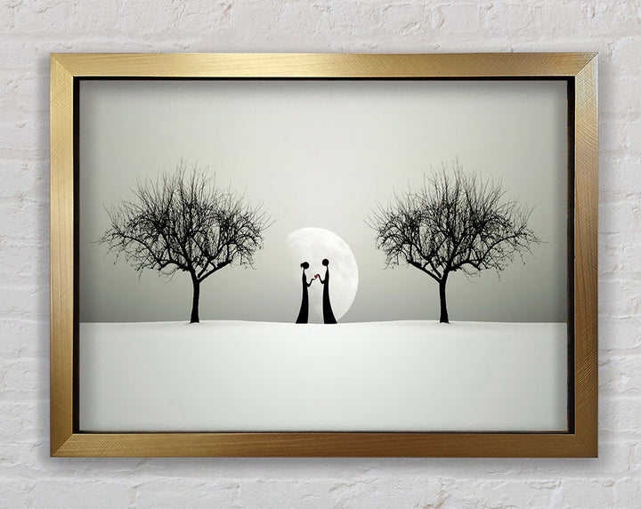 Gerahmter Druck „Love Between The Trees And Moon“, erhältlich in mehreren Rahmenfarben. Fertig zum Aufhängen aus der Schachtel und handgefertigt im Vereinigten Königreich.