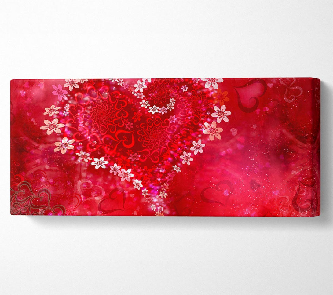 Leinwandbild „Love Heart Flowers“, gedruckt auf beschichteter Polyester-Leinwand. Auf einem 44 mm großen Kastenrahmen montiert, fertig zum Aufhängen.