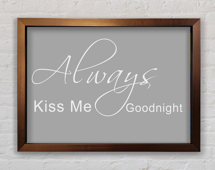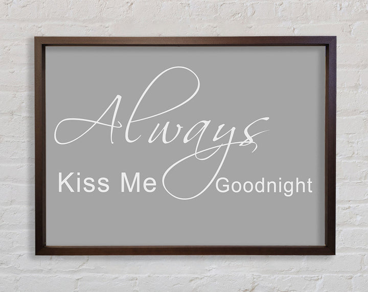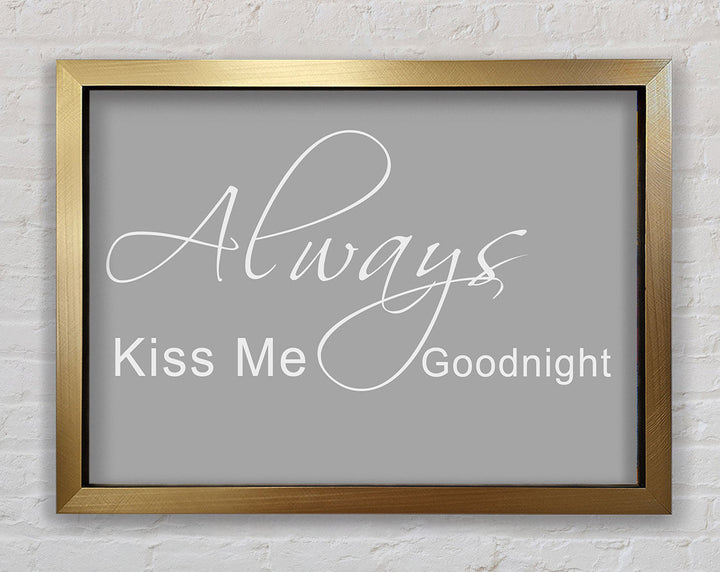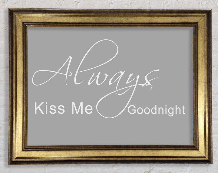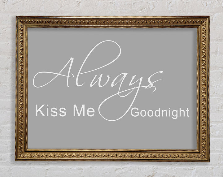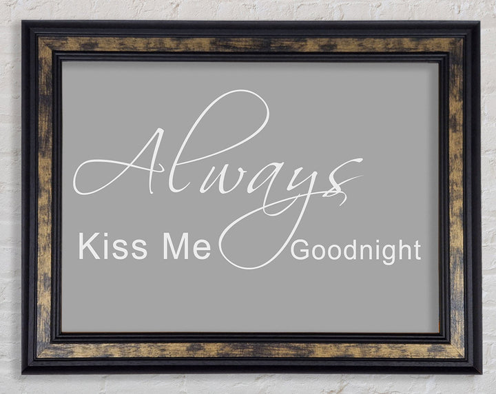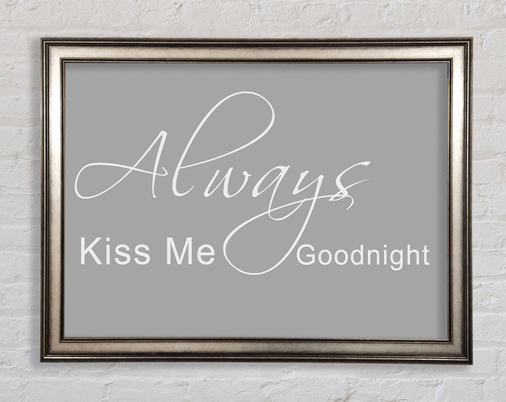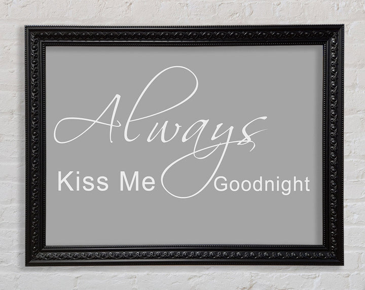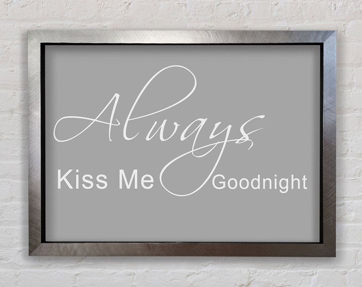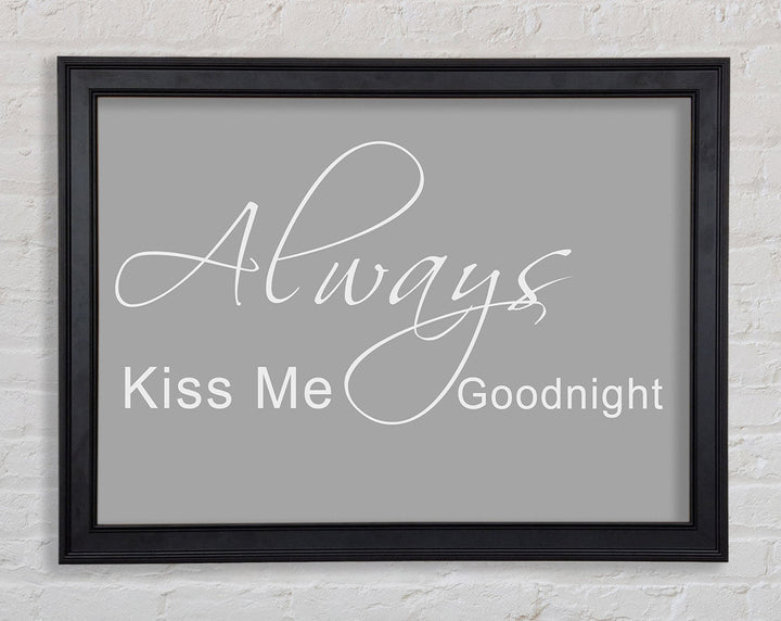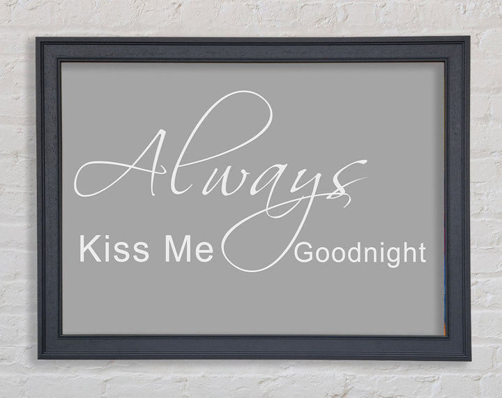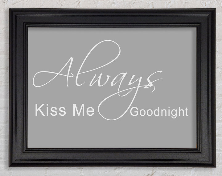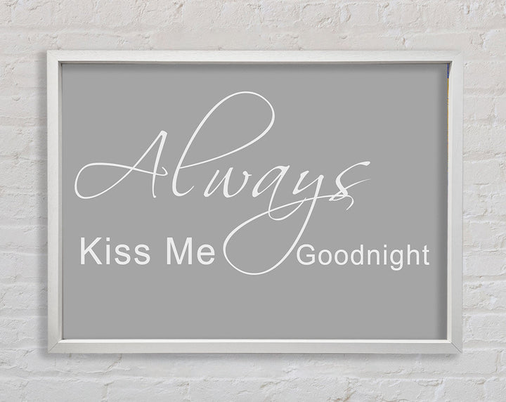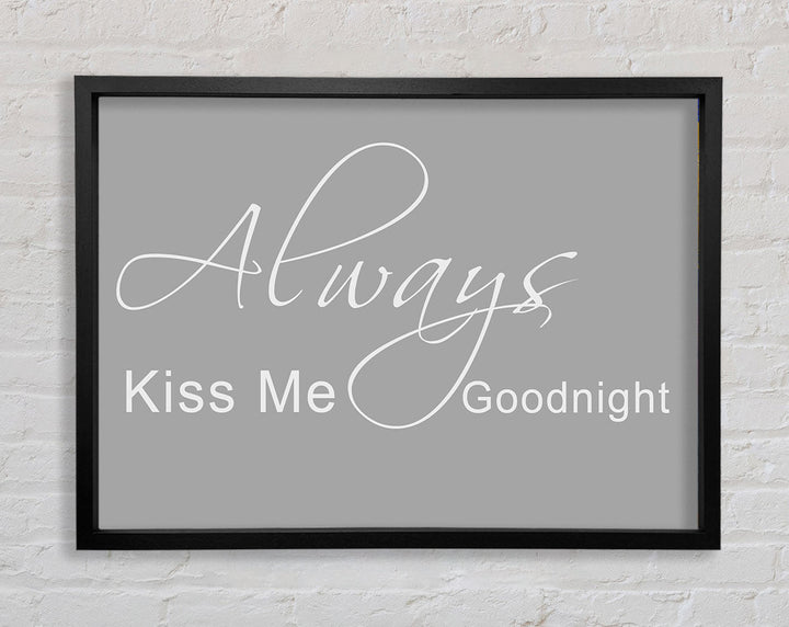 Liebeszitat „Always Kiss Me Goodnight 2“ – gerahmter Druck in Grauweiß, erhältlich in mehreren Rahmenfarben. Fertig zum Aufhängen aus der Schachtel und handgefertigt im Vereinigten Königreich.