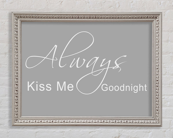 Liebeszitat „Always Kiss Me Goodnight“ 2 Grau Weiß
