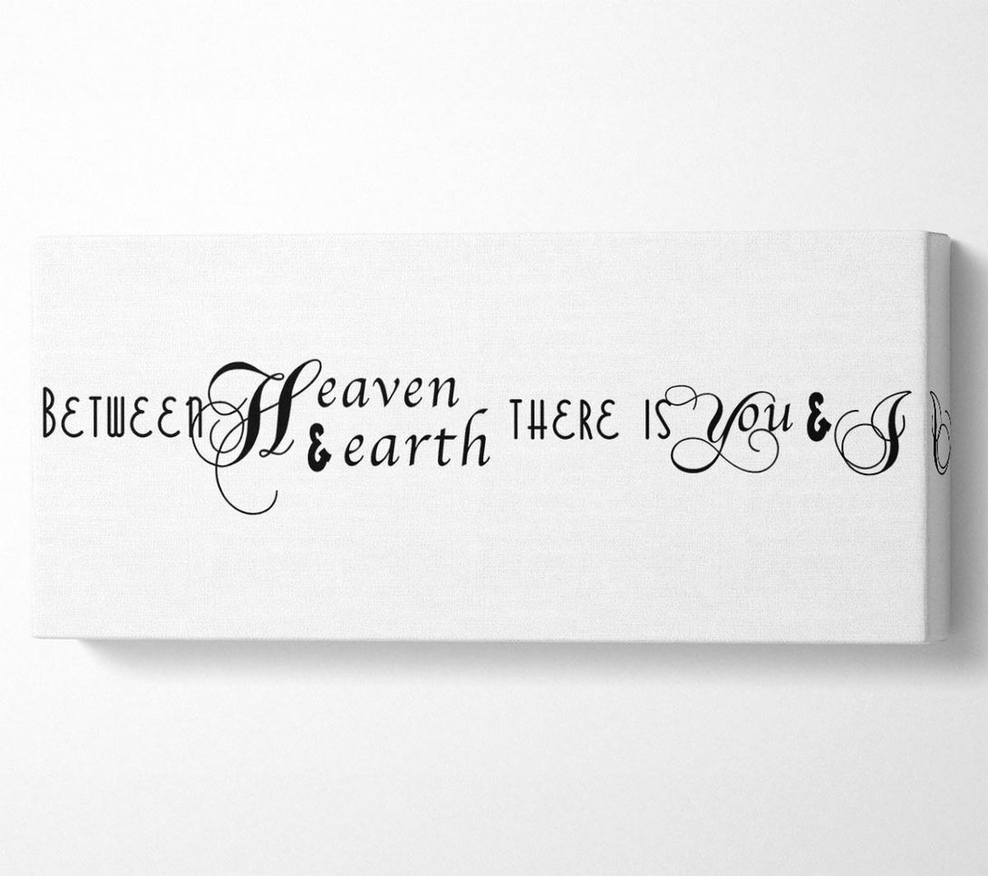 Liebeszitat „Zwischen Himmel und Erde“ auf Leinwand, gedruckt auf beschichteter Polyester-Leinwand. Auf einem 44 mm großen Kastenrahmen montiert, fertig zum Aufhängen.