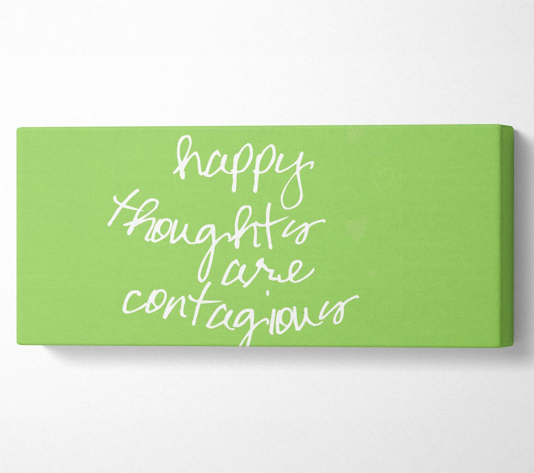 Liebeszitat „Happy Thoughts Are Contagious“ auf limettengrüner Leinwand, gedruckt auf beschichteter Polyester-Leinwand. Auf einem 44 mm großen Kastenrahmen montiert, fertig zum Aufhängen.