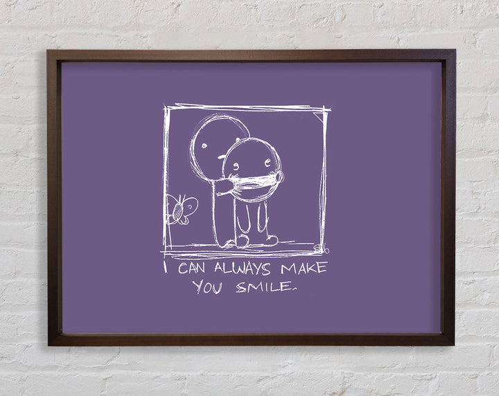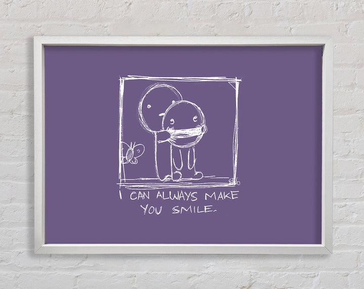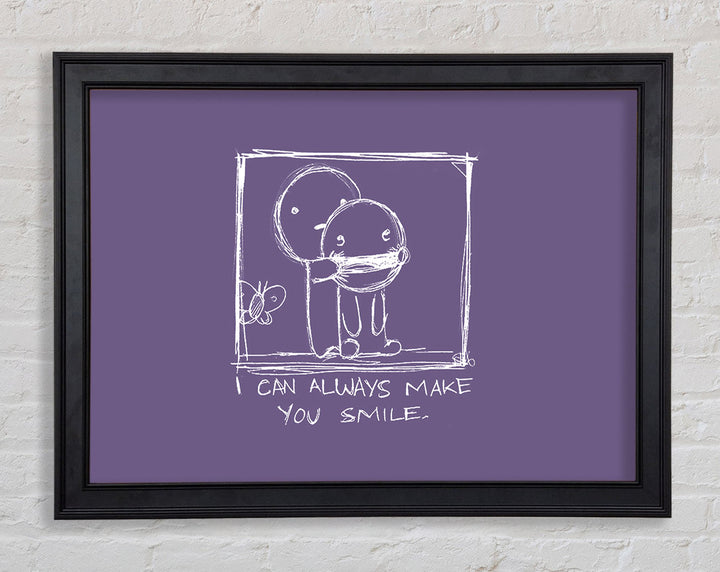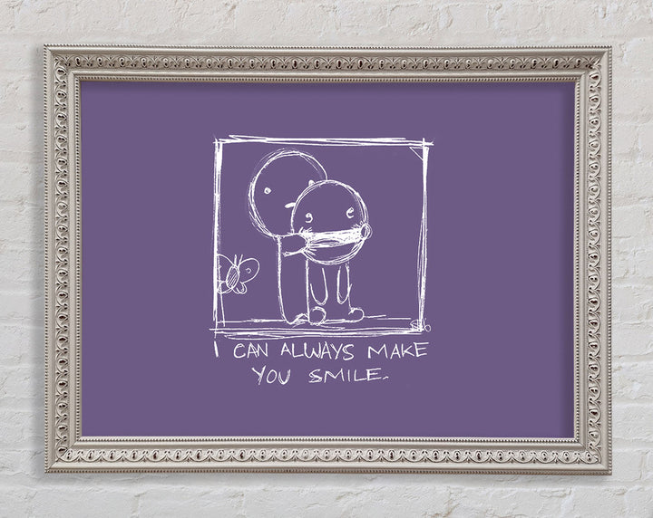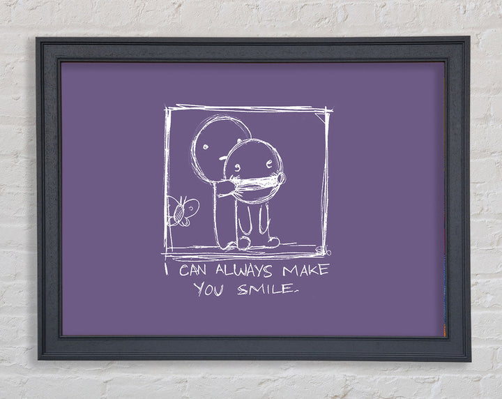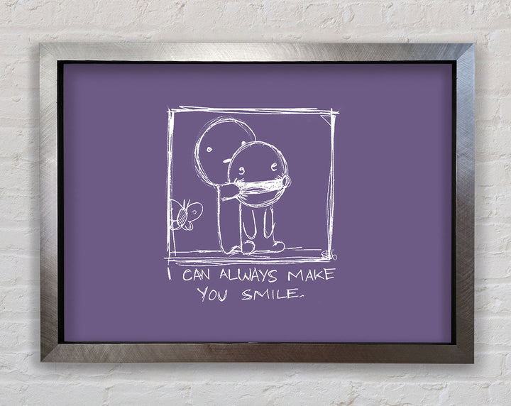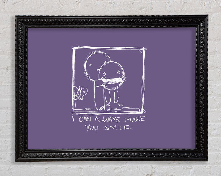 Liebeszitat „I Can Always Make You Smile“ in Lila, gerahmter Druck, in mehreren Rahmenfarben erhältlich. Fertig zum Aufhängen aus der Schachtel und handgefertigt im Vereinigten Königreich.