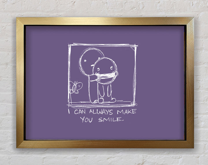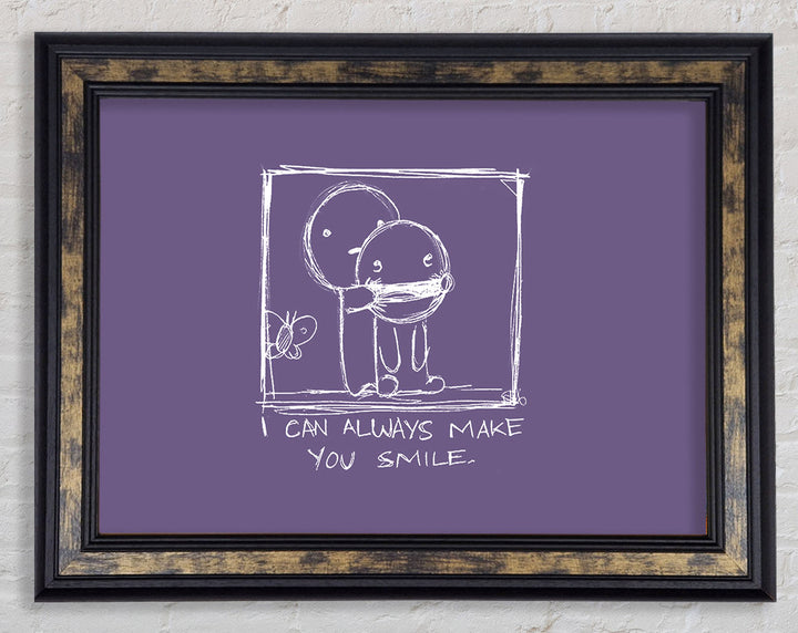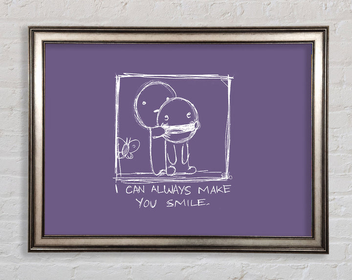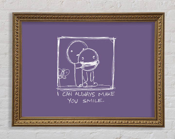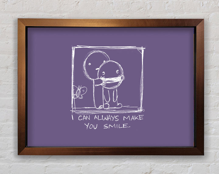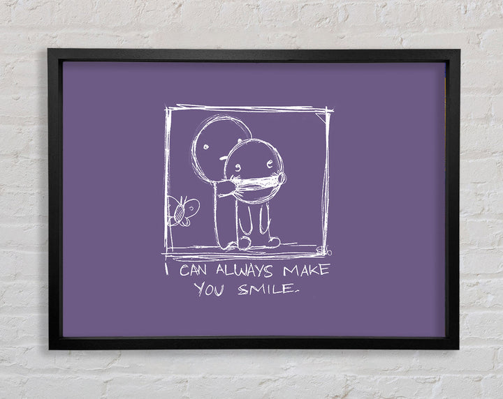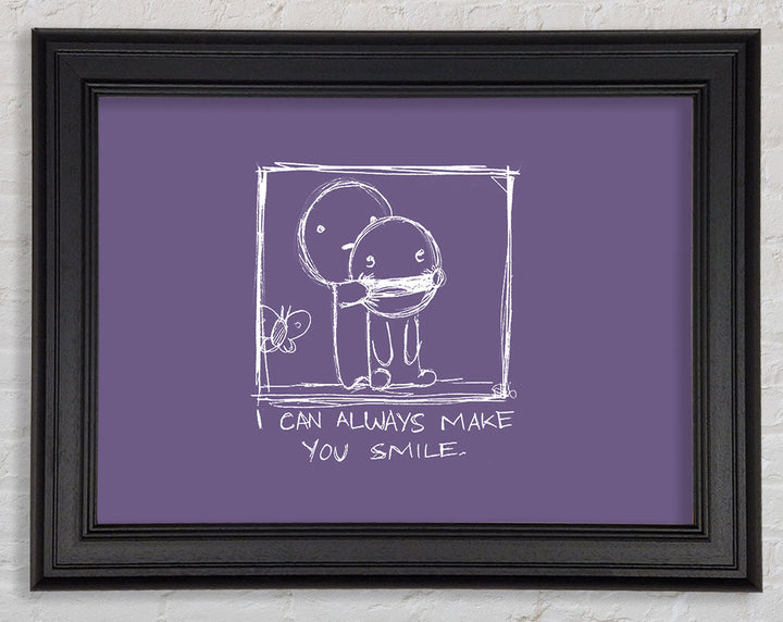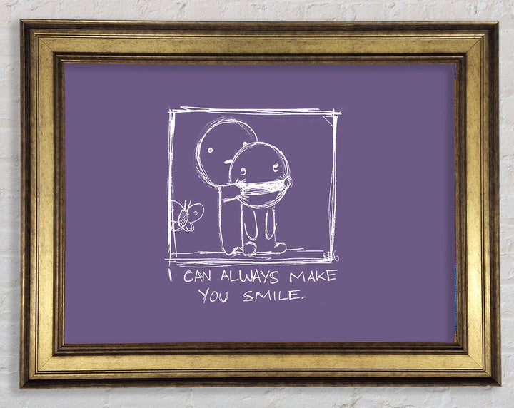 Liebeszitat „I Can Always Make You Smile“ in Lila, gerahmter Druck, in mehreren Rahmenfarben erhältlich. Fertig zum Aufhängen aus der Schachtel und handgefertigt im Vereinigten Königreich.