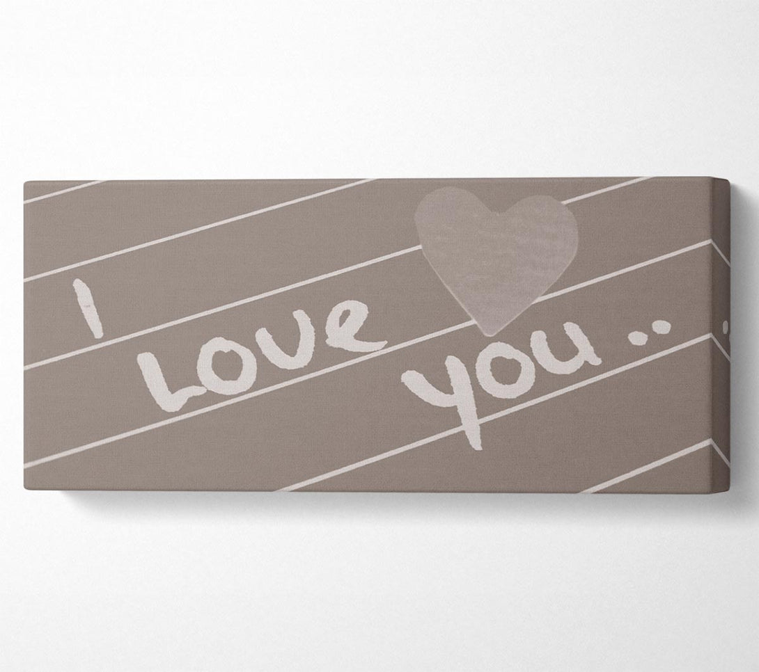 Liebeszitat „I Love You Heart“ auf beigefarbener Leinwand, gedruckt auf beschichteter Polyester-Leinwand. Auf einem 44 mm großen Kastenrahmen montiert, fertig zum Aufhängen.