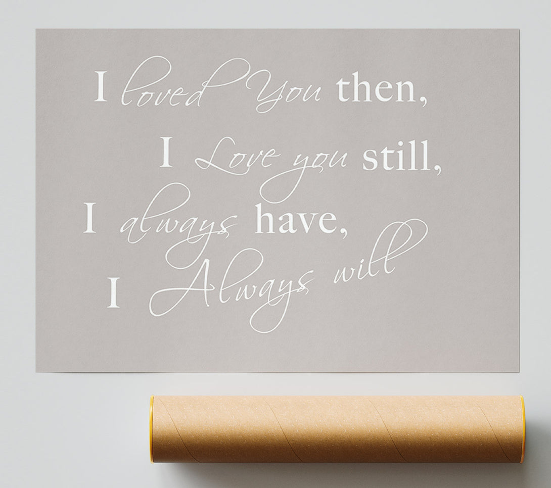 Love Quote I Loved You Then I Love You Still Beige Giclee Print
