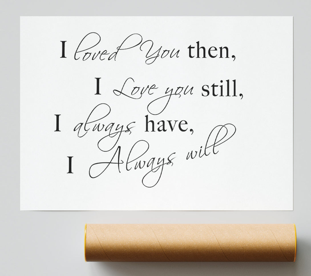 Our Love Quote I Loved You Then I Love You Still White Poster is printed 260 GSM premium lustre paper that offers vibrant colours and exceptional detail.
