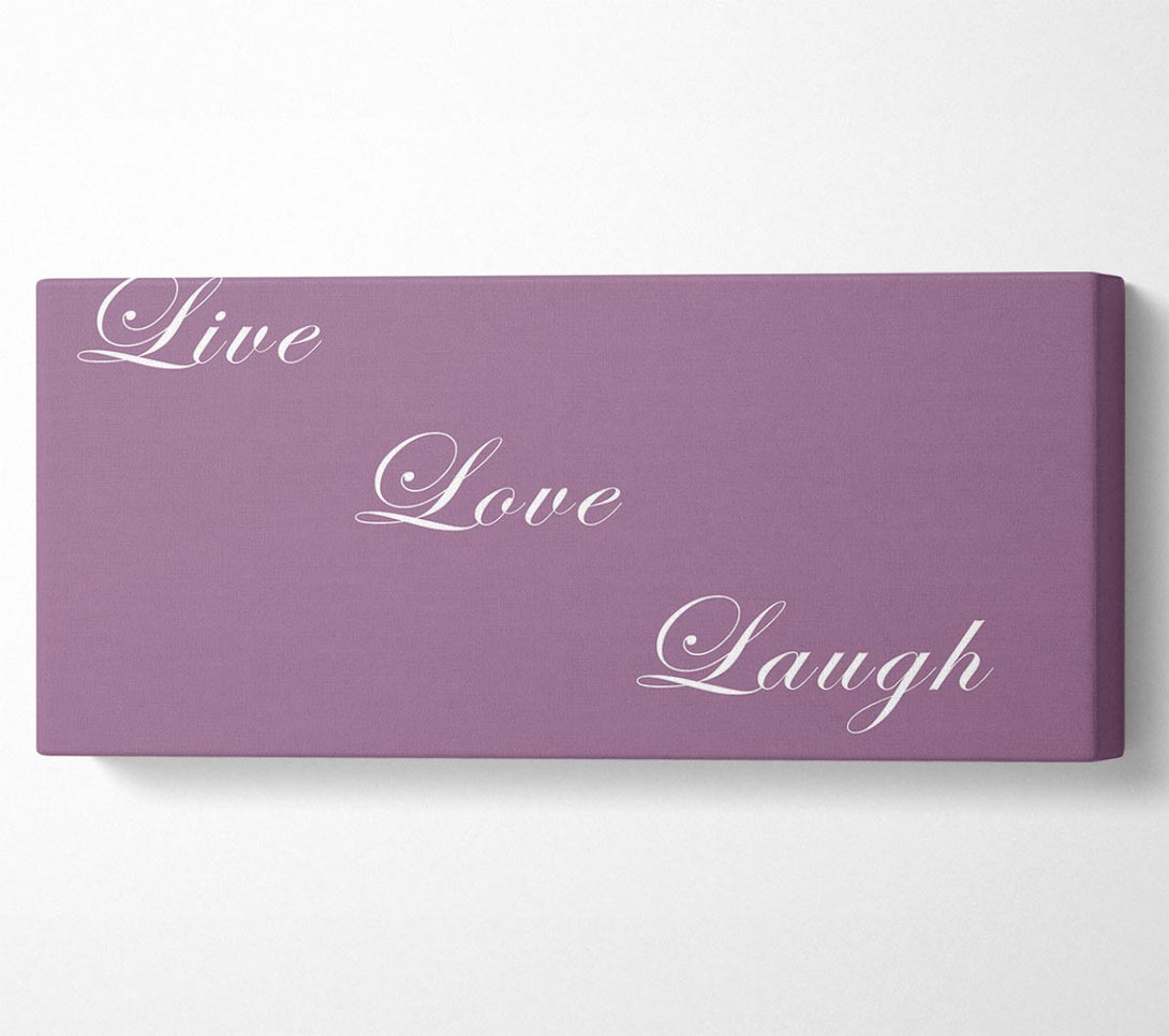 Liebeszitat „Live Love Laugh“ auf Leinwand in Altrosa, gedruckt auf beschichteter Polyester-Leinwand. Auf einem 44 mm großen Kastenrahmen montiert, fertig zum Aufhängen.