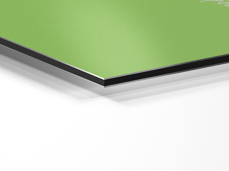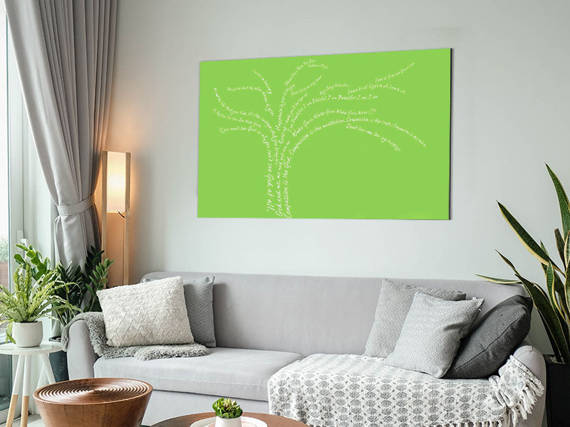 Liebeszitat „Der Liebesbaum, Limettengrün“, gedruckt auf gebürstetem Aluminium-Dibond. Eine moderne Art, Kunst zu präsentieren und leicht zu pflegen.