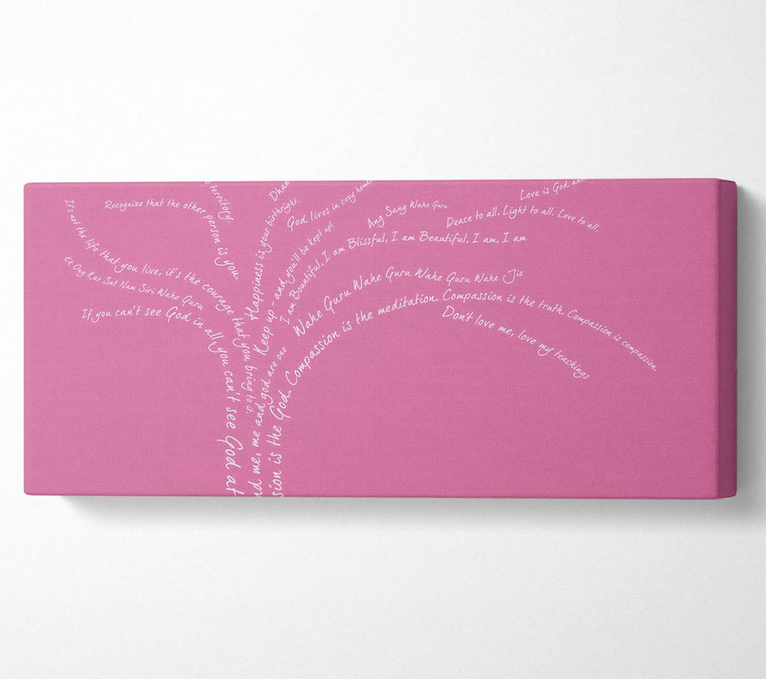 Liebeszitat „The Love Tree Pink“ auf Leinwand, gedruckt auf beschichteter Polyester-Leinwand. Auf einem 44 mm großen Kastenrahmen montiert, fertig zum Aufhängen.