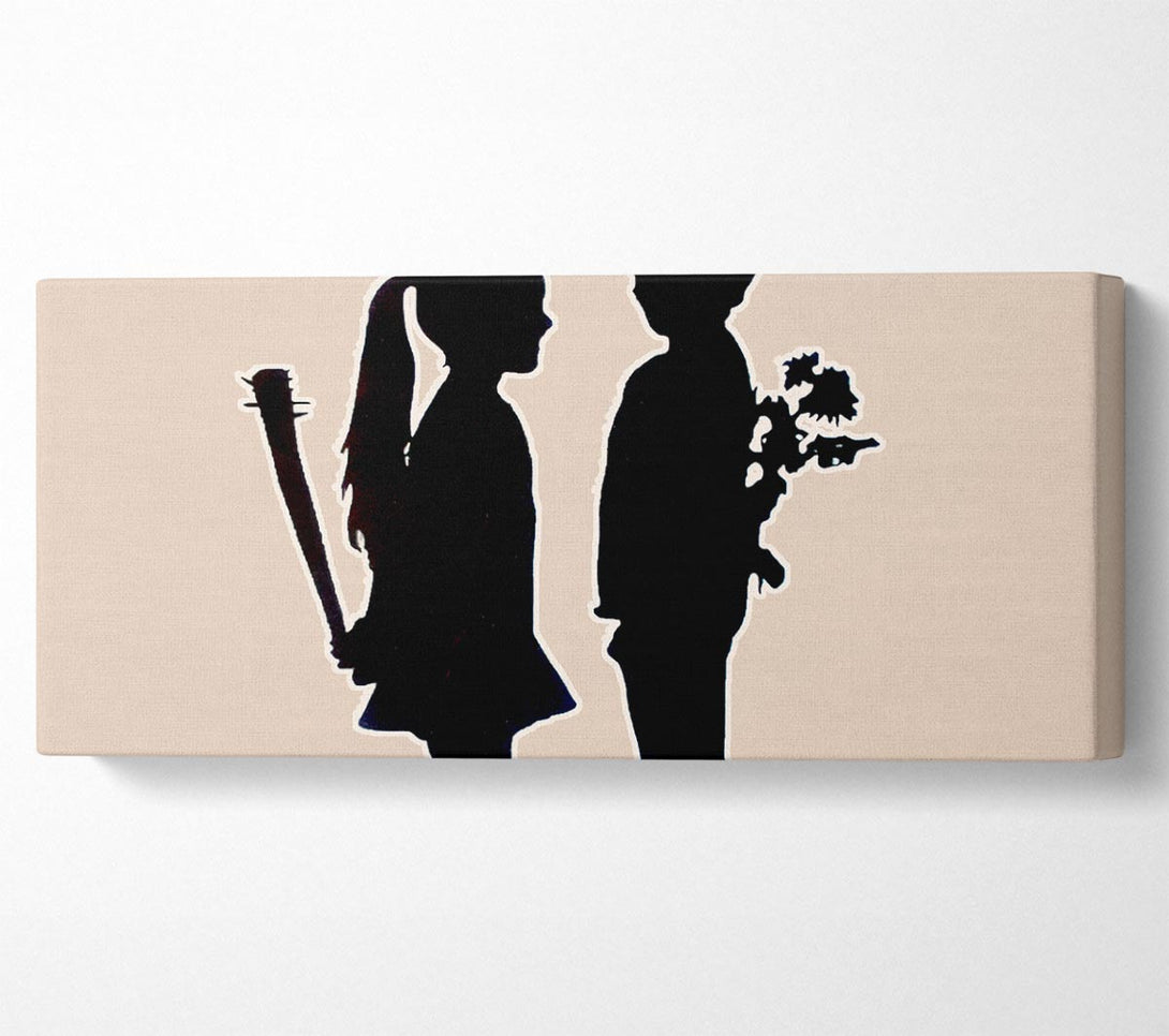 Love War Kids-Leinwand, gedruckt auf beschichteter Polyester-Leinwand. Auf einem 44 mm großen Kastenrahmen montiert, fertig zum Aufhängen.