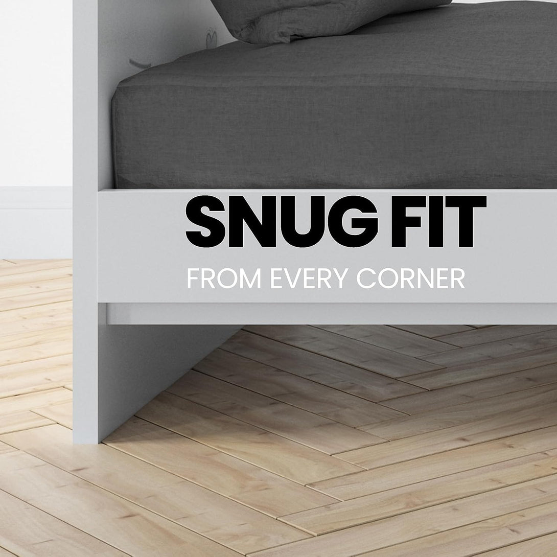 Description: Each fitted sheet features a robust all-around elastic edge, expertly tailored to hug your mattress securely. Designed to fit mattresses up to 30 cm deep, this flexible construction ensures a smooth, wrinkle-free look and a reliable fit on single, double, king, or super king beds.