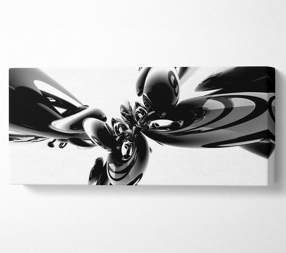 Magic Eight Ball Black n White-Leinwand, gedruckt auf beschichteter Polyester-Leinwand. Auf einem 44 mm großen Kastenrahmen montiert, fertig zum Aufhängen.