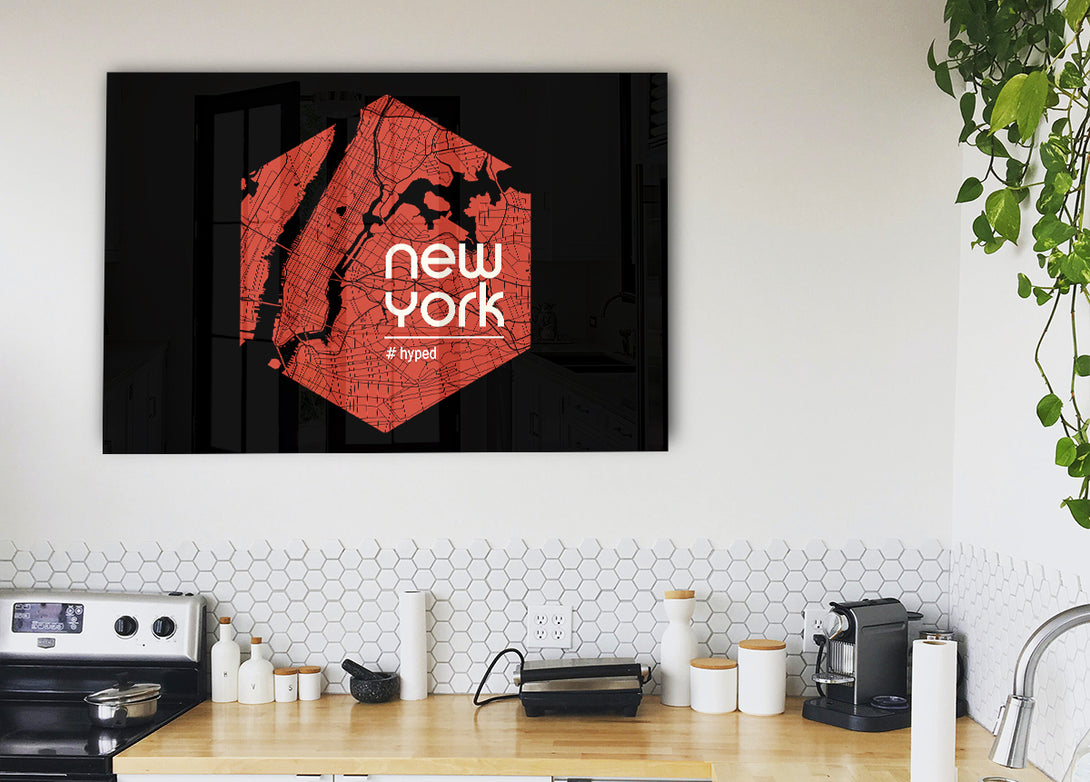 Acryldruck „Map Of NYC“, UV-gedruckt auf 5 mm dickes Acrylglas. Wird mit allem geliefert, was Sie zum Aufhängen an die Wand brauchen.