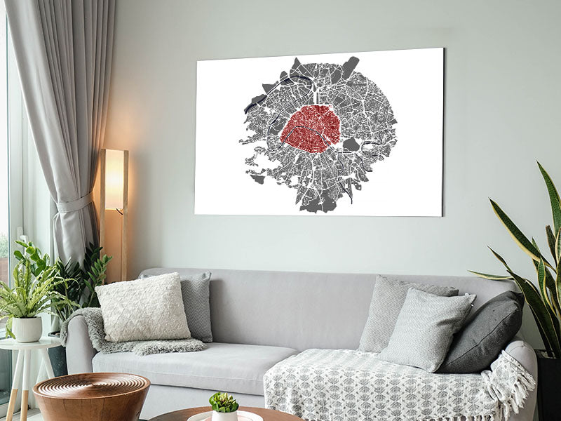 Stadtplan 5 Paris, gedruckt auf gebürstetem Aluminium-Dibond. Eine moderne Art, Kunst zu präsentieren und leicht zu pflegen.