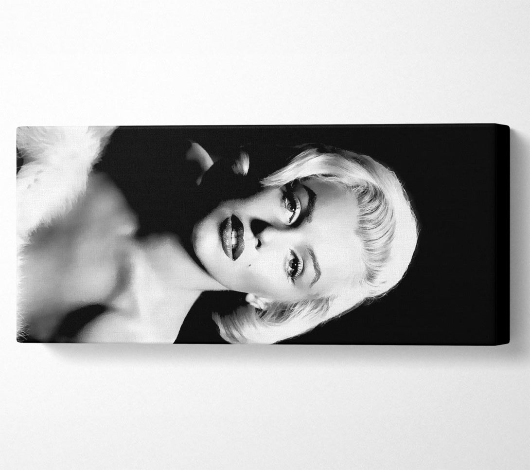 Marilyn Monroe Classic Schwarz-Weiß-Leinwand, gedruckt auf beschichteter Polyester-Leinwand. Auf einem 44 mm großen Kastenrahmen montiert, fertig zum Aufhängen.