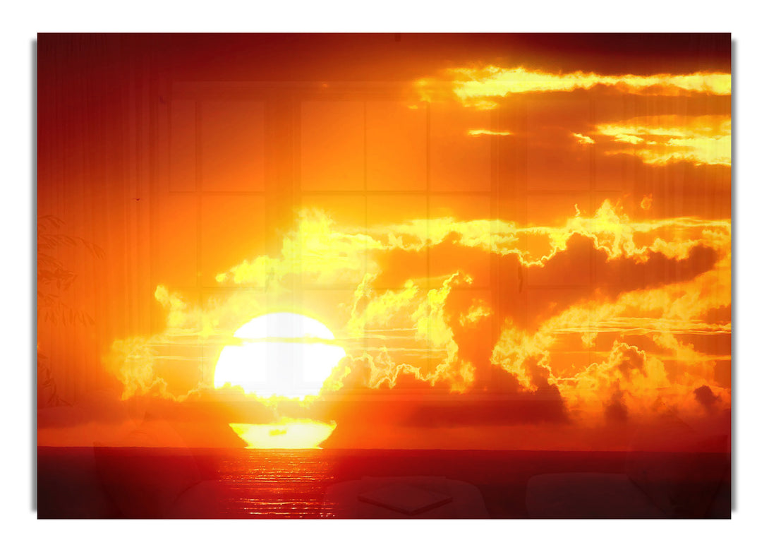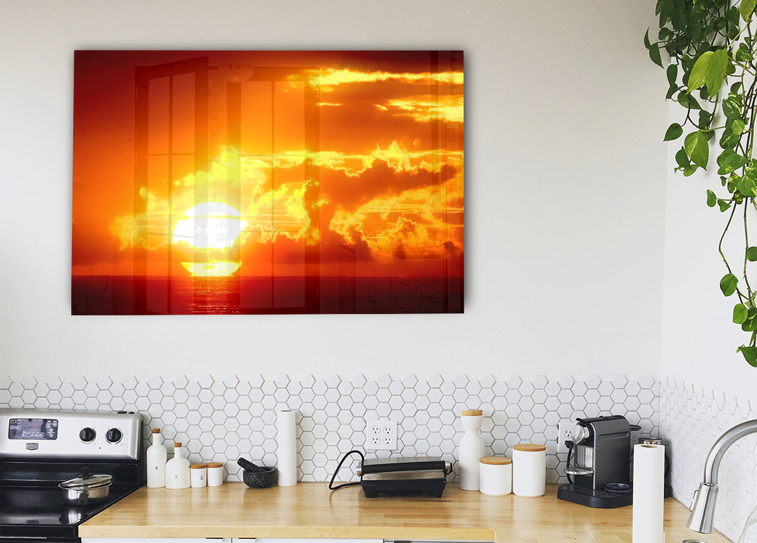 Wunderbarer Acryldruck „Sunset Beach“, UV-gedruckt auf 5 mm dickes Acrylglas. Wird mit allem geliefert, was Sie zum Aufhängen an die Wand brauchen.