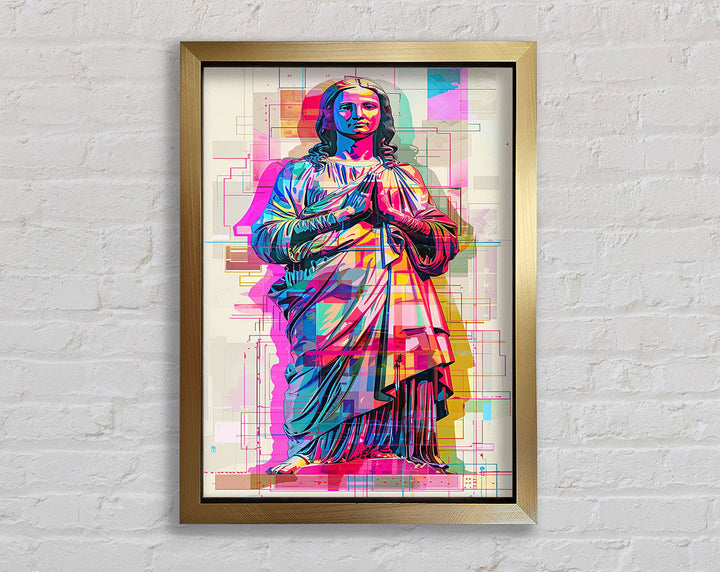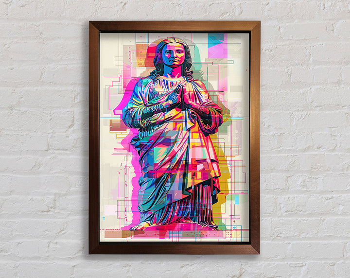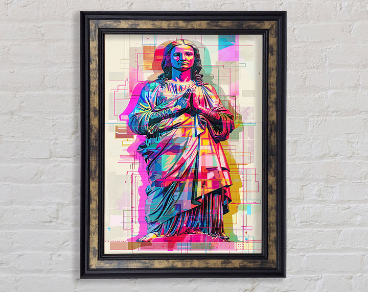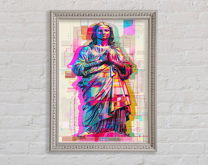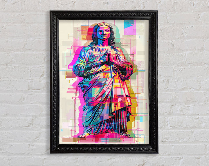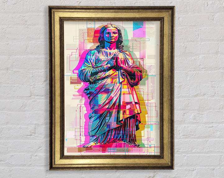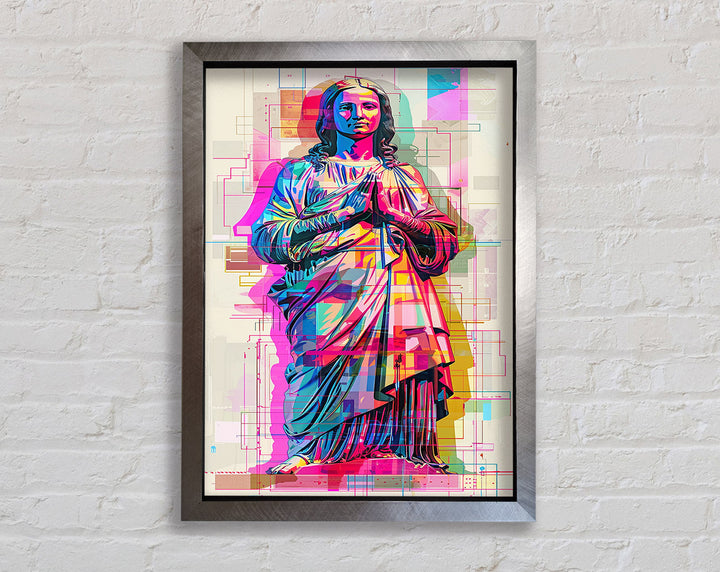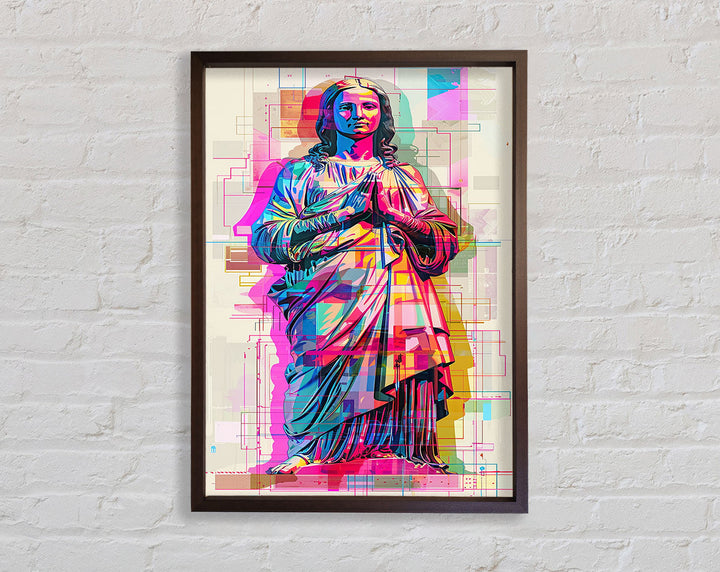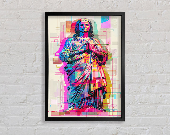 Choose from a variety of colors to match your decor, and enjoy the convenience of a ready-to-hang masterpiece that requires no additional framing. The framed art captures the timeless grace of the Mary Statue, making it a meaningful addition to your home or office. Enhance your surroundings with this elegant and thoughtful artwork today.