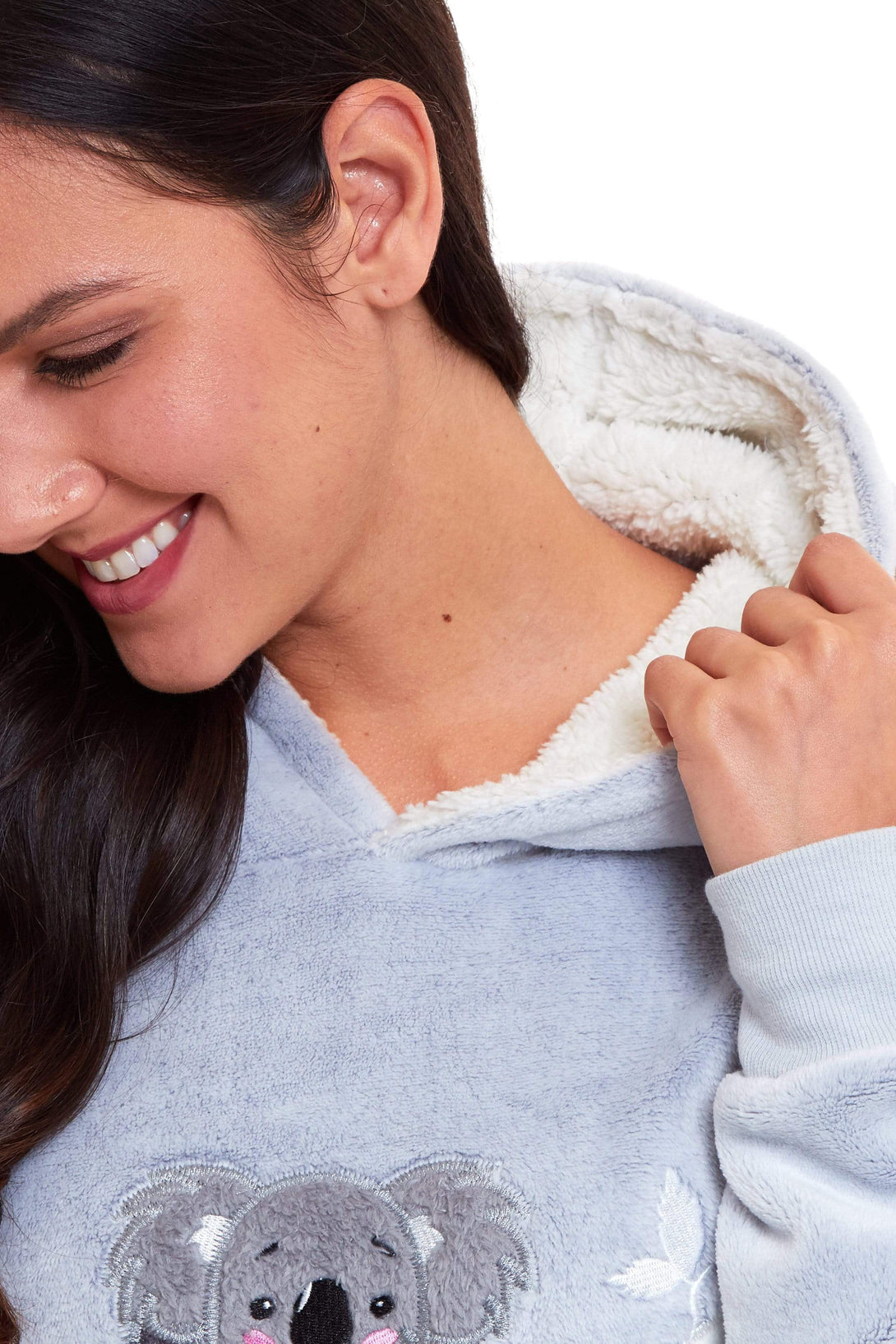 Description: Centrally placed on the hooded top, the marvellous embroidered koala bear adds a touch of whimsy and charm to the pyjama set. This unique design element is both playful and stylish.