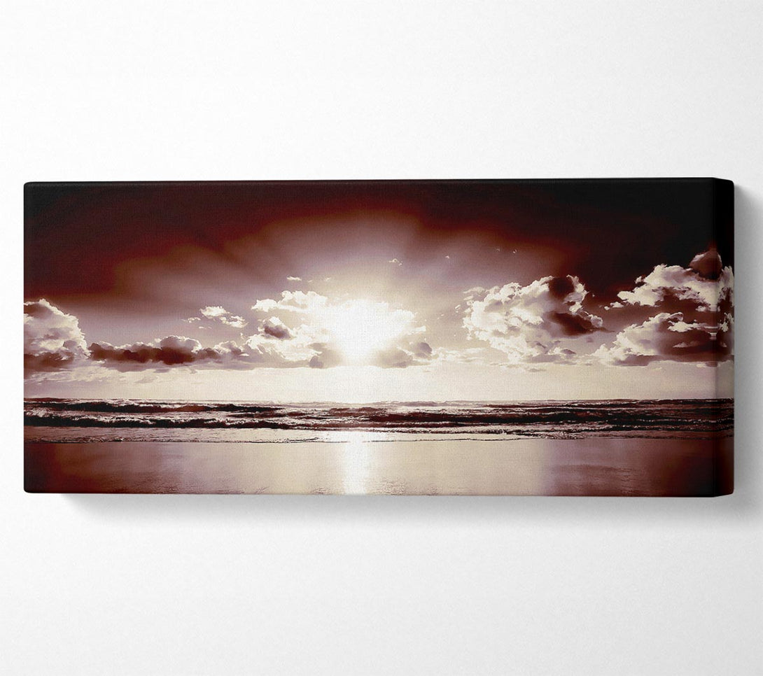 Leinwandbild „Mauve Ocean Sunrise“, gedruckt auf beschichteter Polyester-Leinwand. Auf einem 44 mm großen Kastenrahmen montiert, fertig zum Aufhängen.