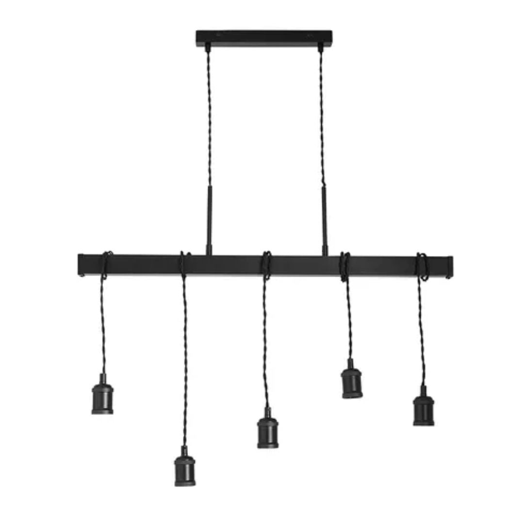The Melrose 5-light pendant bar is a bold industrial-style lighting fixture, perfect for creating a striking focal point in contemporary spaces. Featuring a sleek matte black-finished bar, this pendant light exudes modern sophistication while embracing raw, urban aesthetics. Five adjustable black cables suspend exposed lamps, allowing for customisable hanging heights to suit various settings, from kitchen islands and dining tables to bar areas and loft-style interiors. The open bulb design enhances its industrial appeal, delivering both functional and atmospheric lighting. Pair with statement filament bulbs to complete the modern, warehouse-style look.
