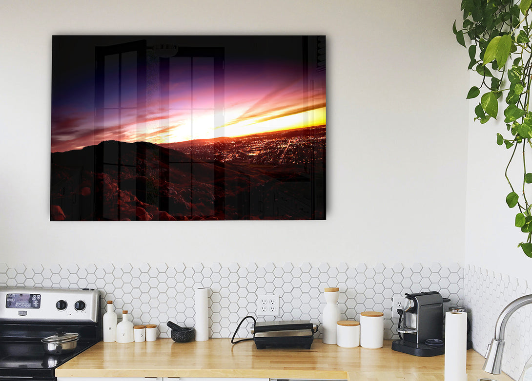 Acryldruck „Metro Sunset“, UV-gedruckt auf 5 mm dickes Acrylglas. Wird mit allem geliefert, was Sie zum Aufhängen an die Wand brauchen.