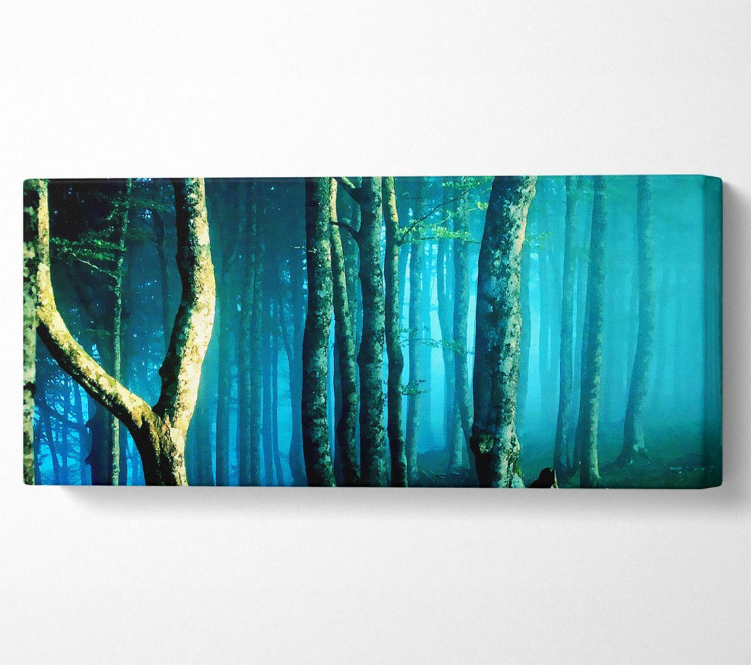 Leinwandbild „Midnight Blue Forest“, gedruckt auf beschichteter Polyester-Leinwand. Auf einem 44 mm großen Kastenrahmen montiert, fertig zum Aufhängen.