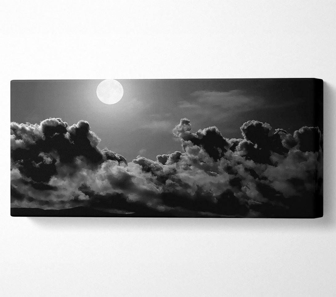 Midnight Clouds B n W-Leinwand, gedruckt auf beschichteter Polyester-Leinwand. Auf einem 44 mm großen Kastenrahmen montiert, fertig zum Aufhängen.