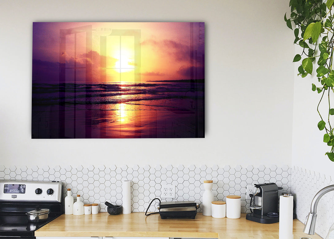 Acryldruck „Midnight Sun“, UV-gedruckt auf 5 mm dickes Acrylglas. Wird mit allem geliefert, was Sie zum Aufhängen an Ihrer Wand benötigen.