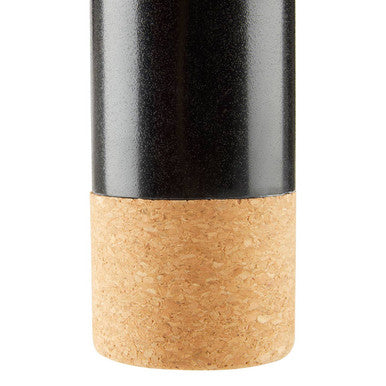 The 450ml bottle is made from durable stainless steel and has a double wall design. It has a tough PP lid with integrated drinking spout, and the cork base adds an organic finish to the sleek black colour.