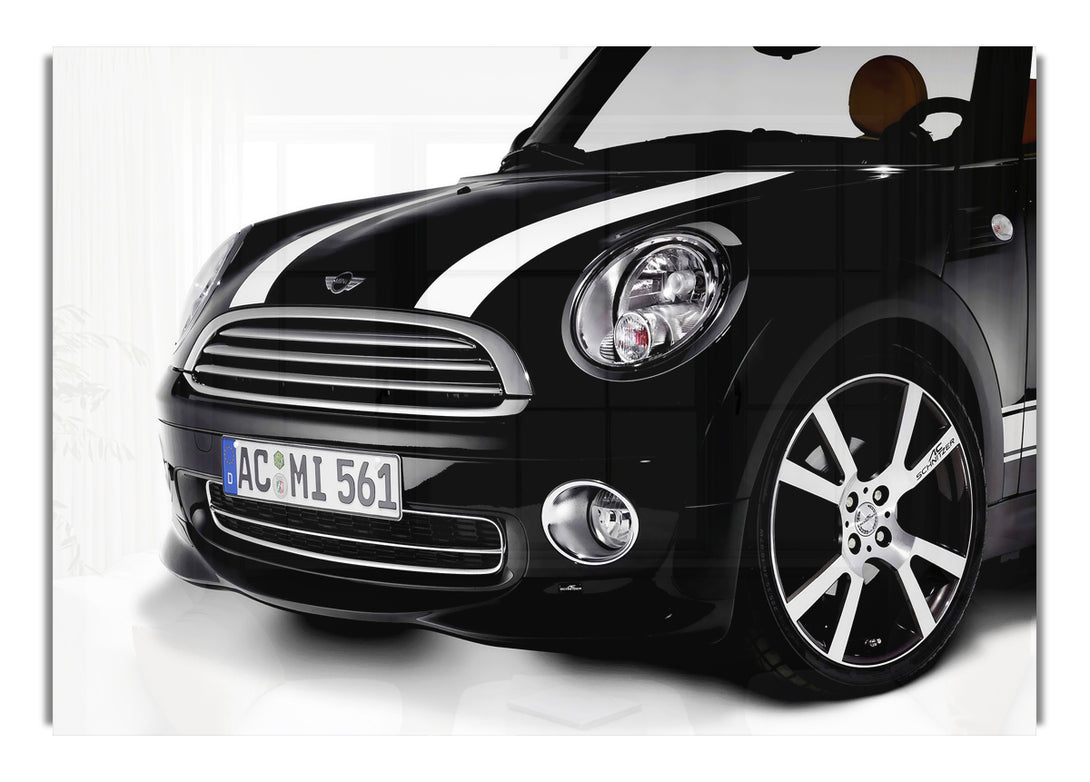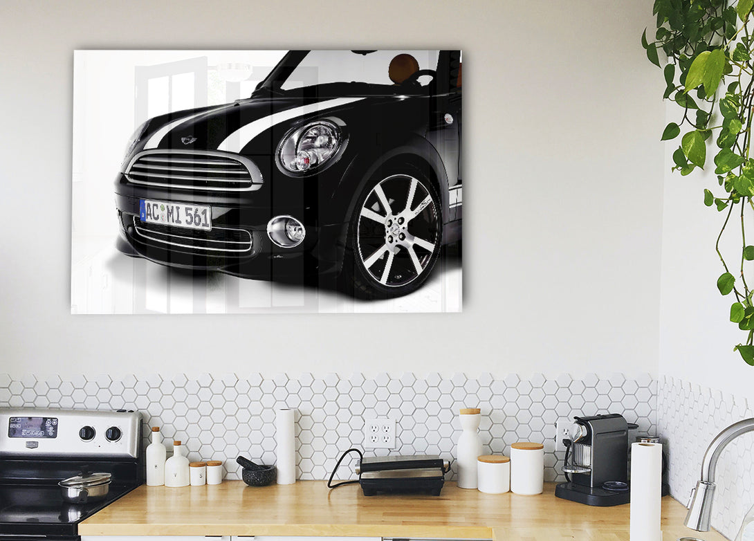 Acryldruck „Mini Coop Front Grill“, UV-gedruckt auf 5 mm dickes Acrylglas. Wird mit allem geliefert, was Sie zum Aufhängen an die Wand brauchen.