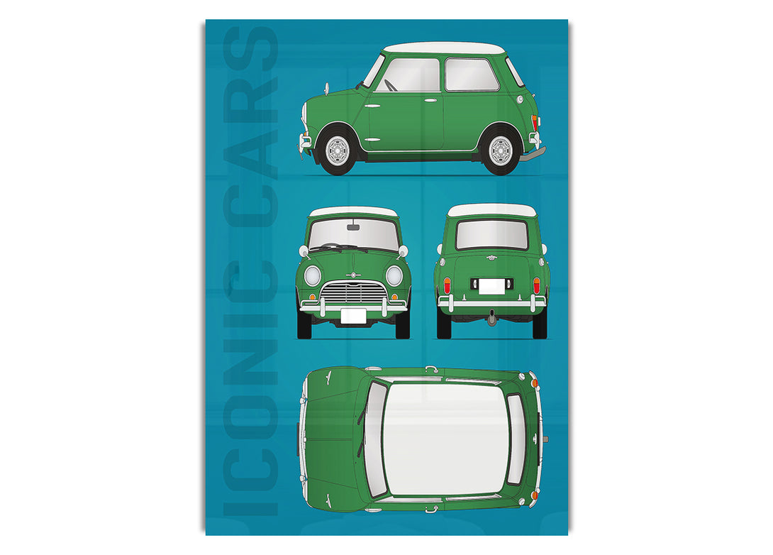 Mini Copper Iconic Acryldruck, UV-gedruckt auf 5 mm dickes Acrylglas. Wird mit allem geliefert, was Sie zum Aufhängen an Ihrer Wand benötigen.