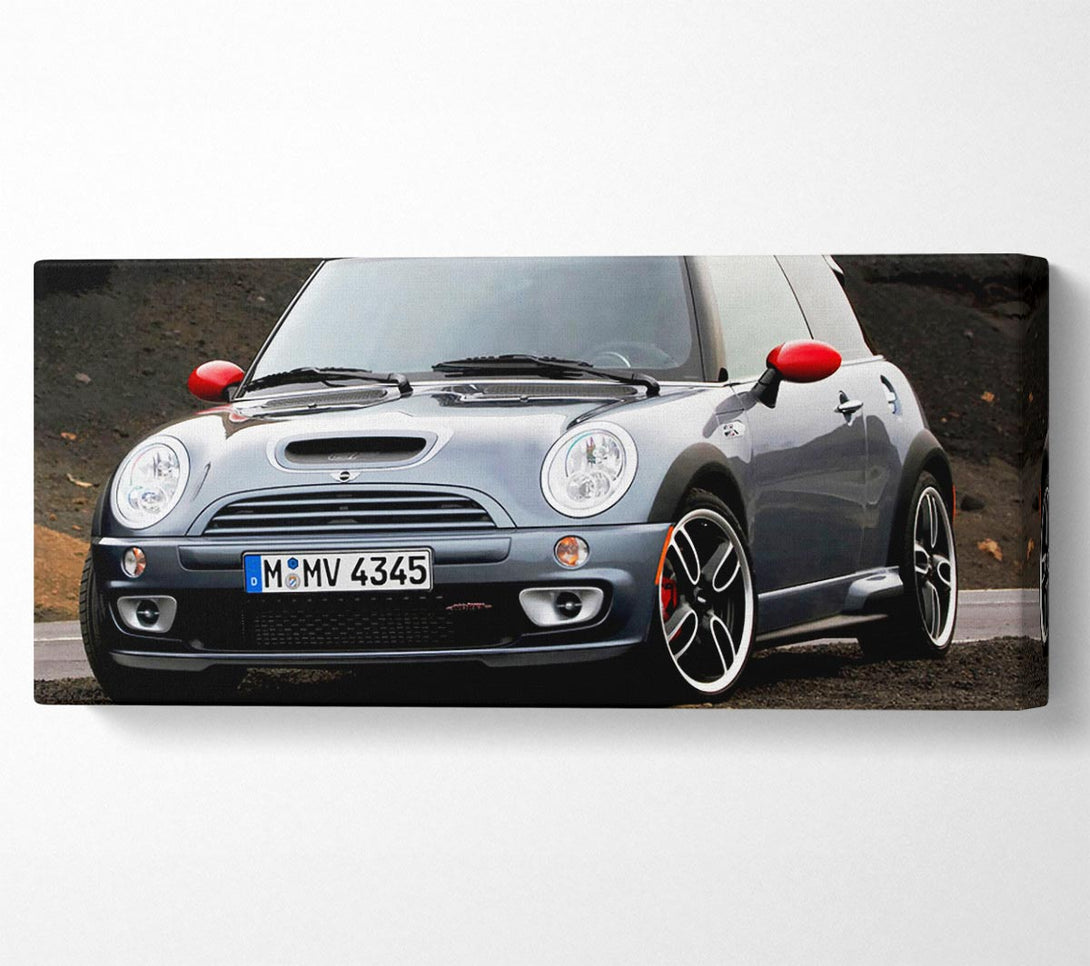 Mini Metro Silver-Leinwand, gedruckt auf beschichteter Polyester-Leinwand. Auf einem 44 mm großen Kastenrahmen montiert, fertig zum Aufhängen.