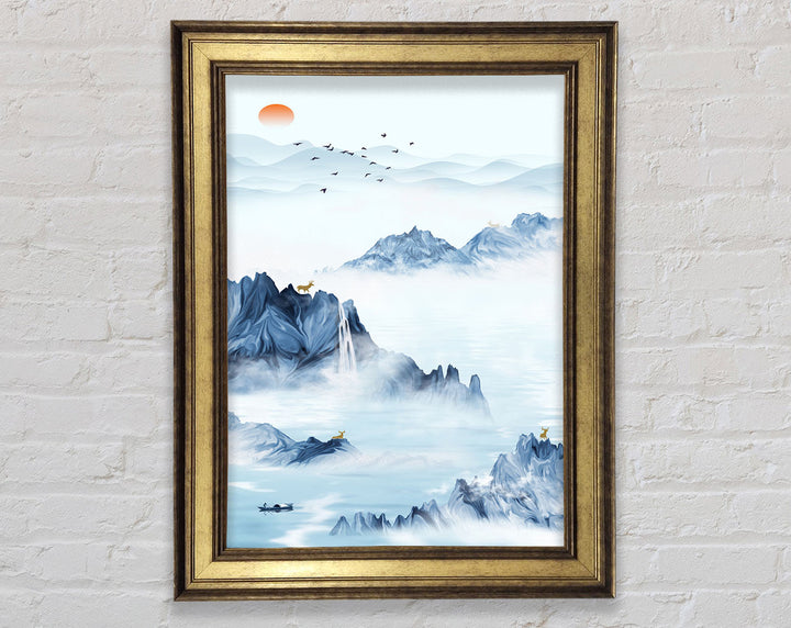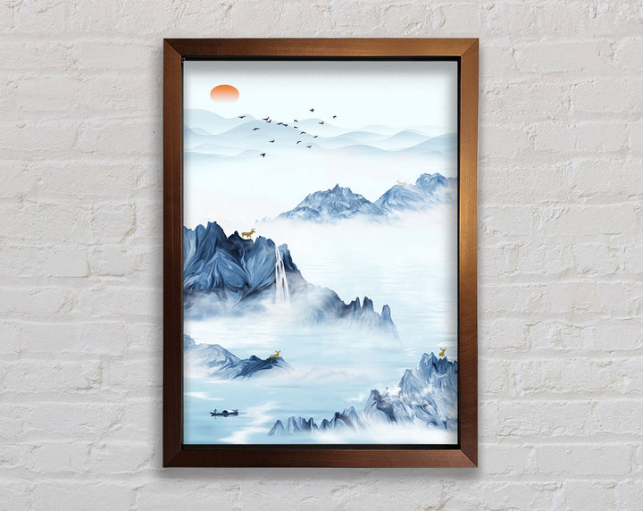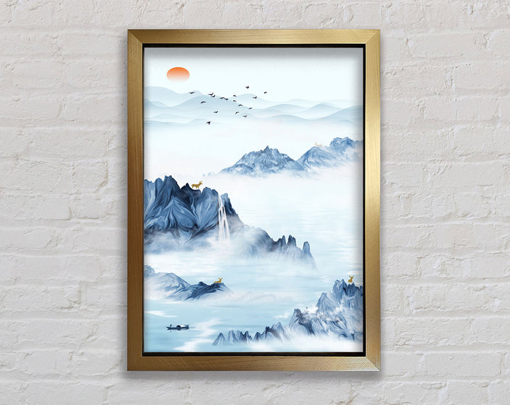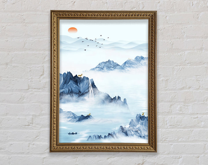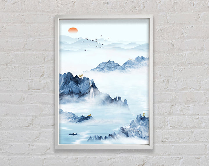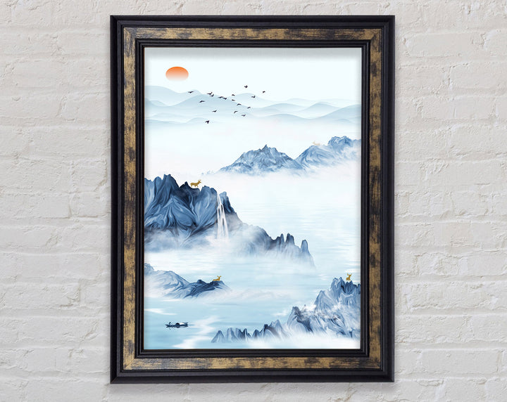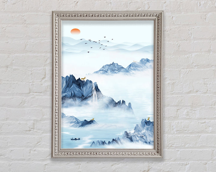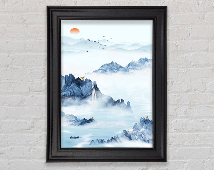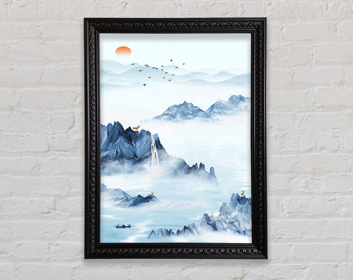 Introducing the Misty Blue Mountains Boat On Lake Framed Print, a stunning piece of framed art that captures the serene beauty of nature. Available in six sizes, ranging from small to oversized, this artwork fits perfectly in any space. The print showcases a tranquil boat gently floating on a mist-covered lake, surrounded by majestic blue mountains. You can choose from a variety of frame colors to match your decor. Each piece is handmade in the United Kingdom, ensuring high-quality craftsmanship. Ready to hang, this framed print adds an instant touch of elegance and calm to your home or office.