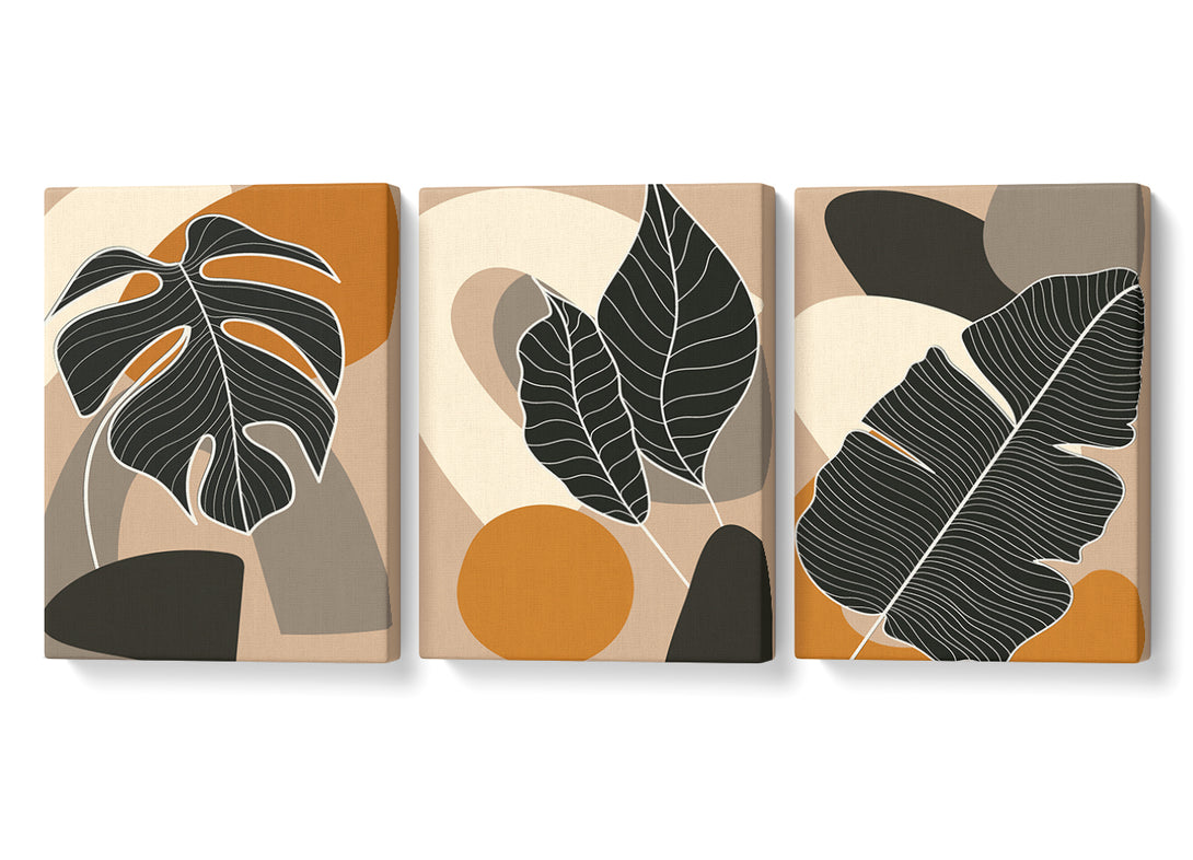 Modernes Pflanzen-Wandbild im Mid-Century-Stil, 3er-Set, erhältlich in 5 Größen. Fertig zum Aufhängen aus der Schachtel und handgefertigt im Vereinigten Königreich.