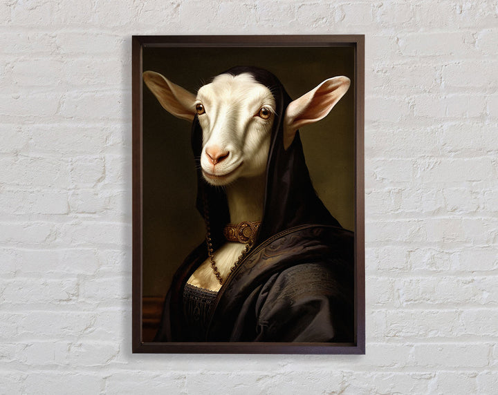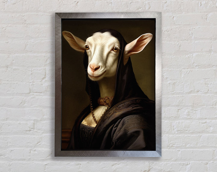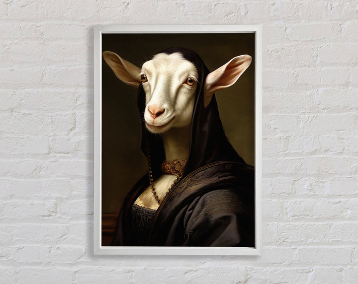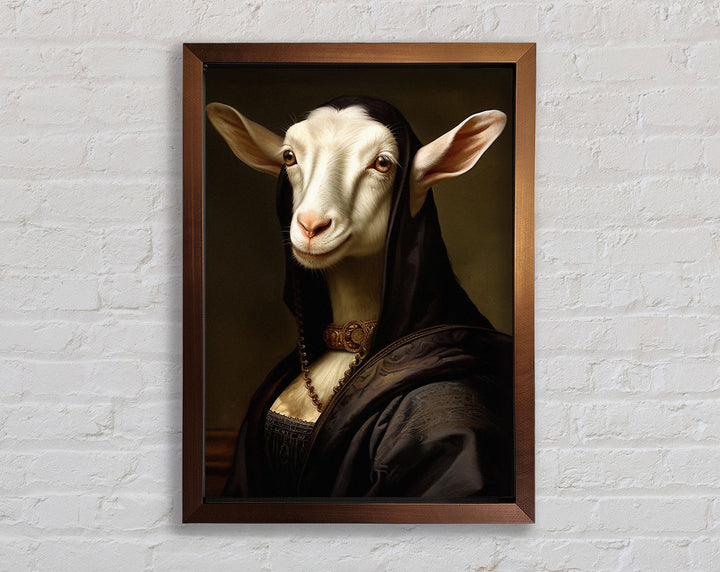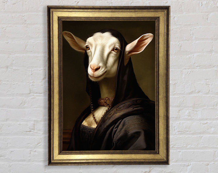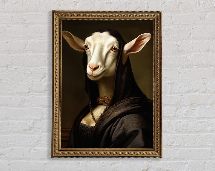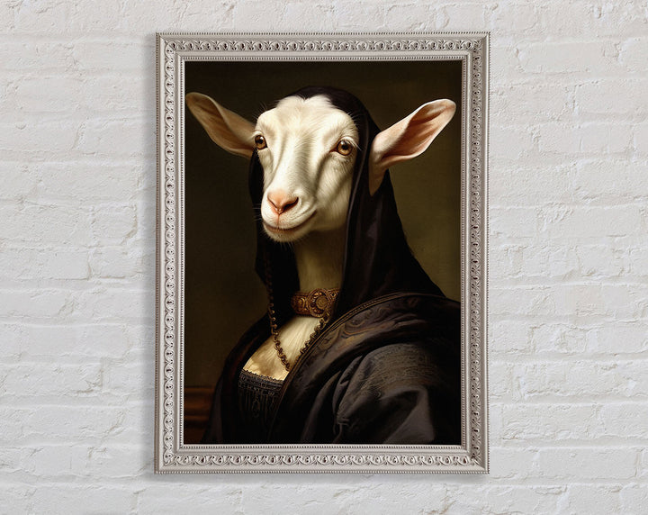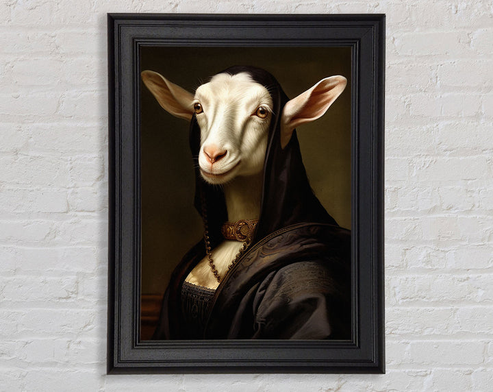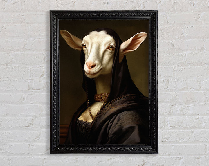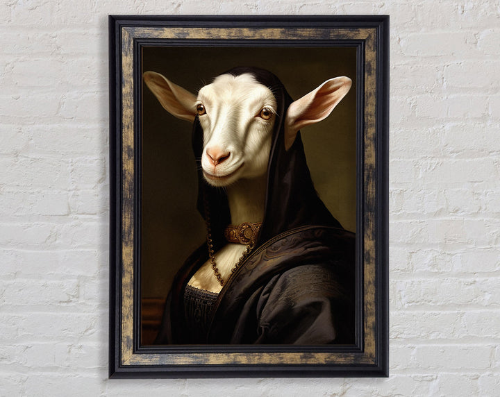 Introducing the Mona Lisa Goat Framed Print, a delightful twist on the classic masterpiece that adds a touch of whimsy to any space. This framed art is available in six sizes, ranging from small to oversized, ensuring the perfect fit for any room. Choose from a variety of colors to match your decor and enjoy the convenience of a piece that's ready to hang right out of the box. Each print is meticulously handmade in the United Kingdom, showcasing exceptional craftsmanship and attention to detail. Elevate your home or office with this unique conversation starter that combines fine art with playful charm.