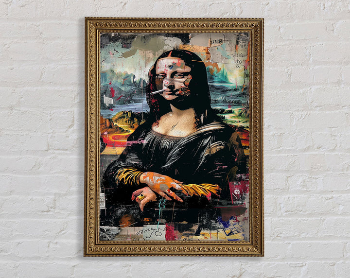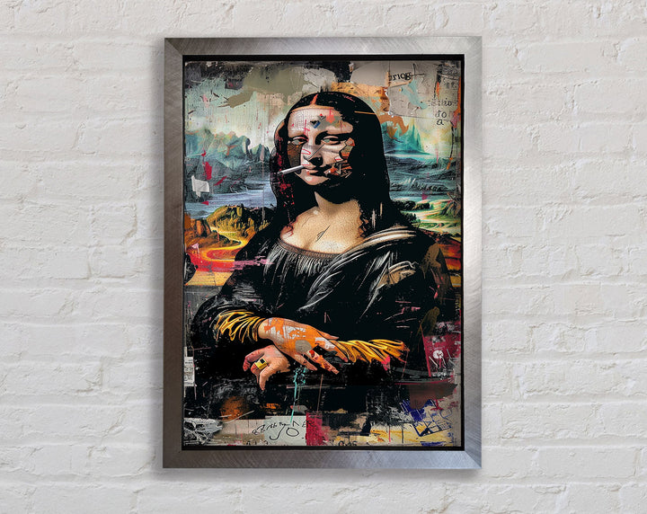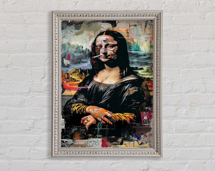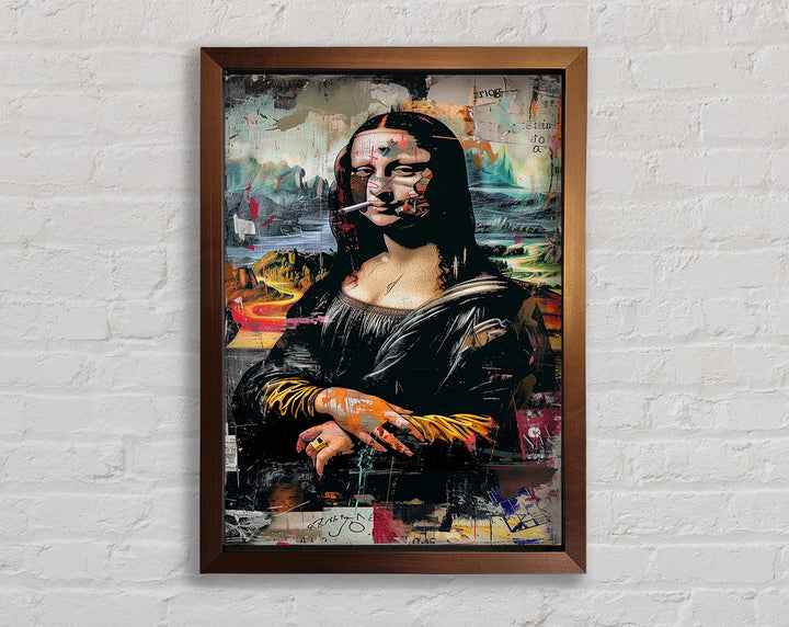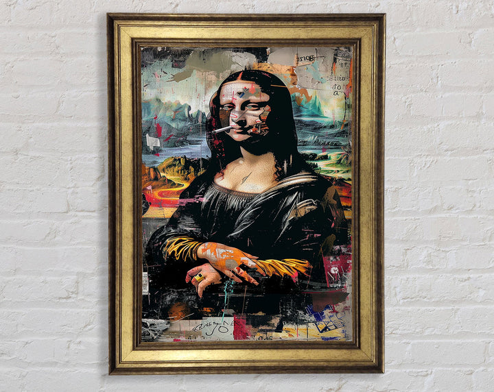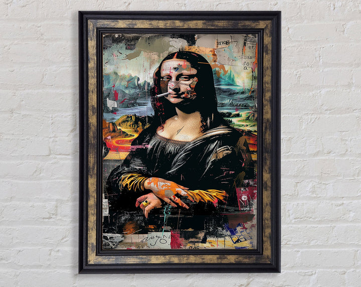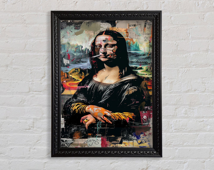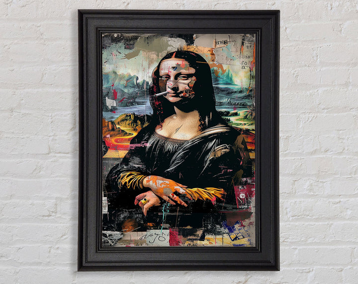 Introducing the Mona Lisa Smoking Framed Print, a unique twist on the classic masterpiece. This framed art piece is perfect for those who appreciate unconventional and thought-provoking decor. Available in 6 sizes, from small to oversized, you can find the perfect fit for any space. Choose from a variety of colors to match your style and home decor.