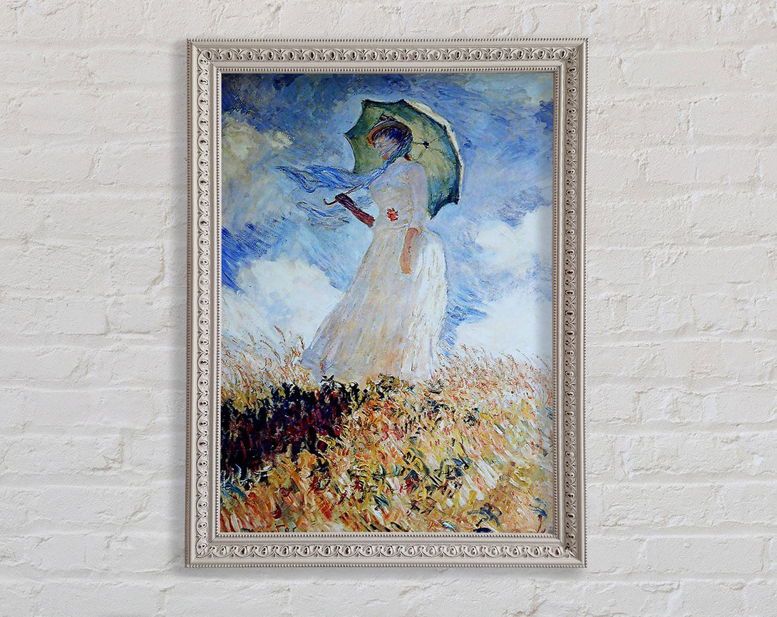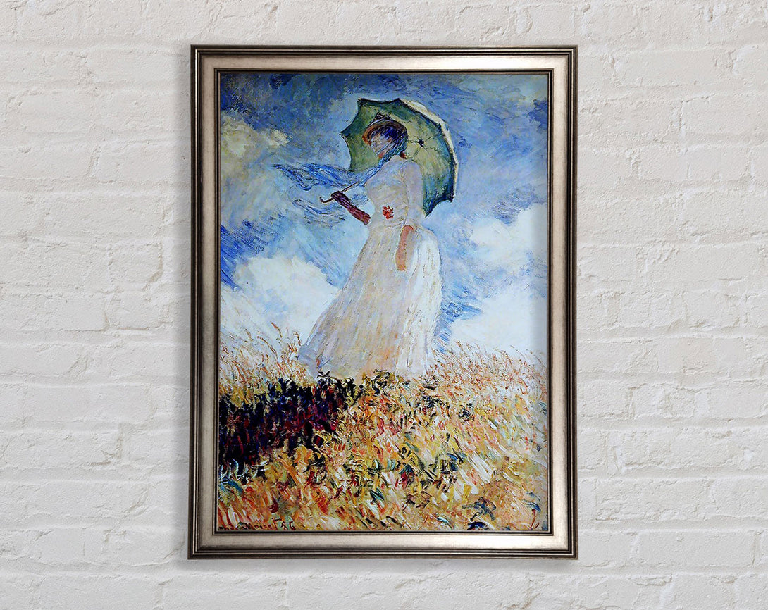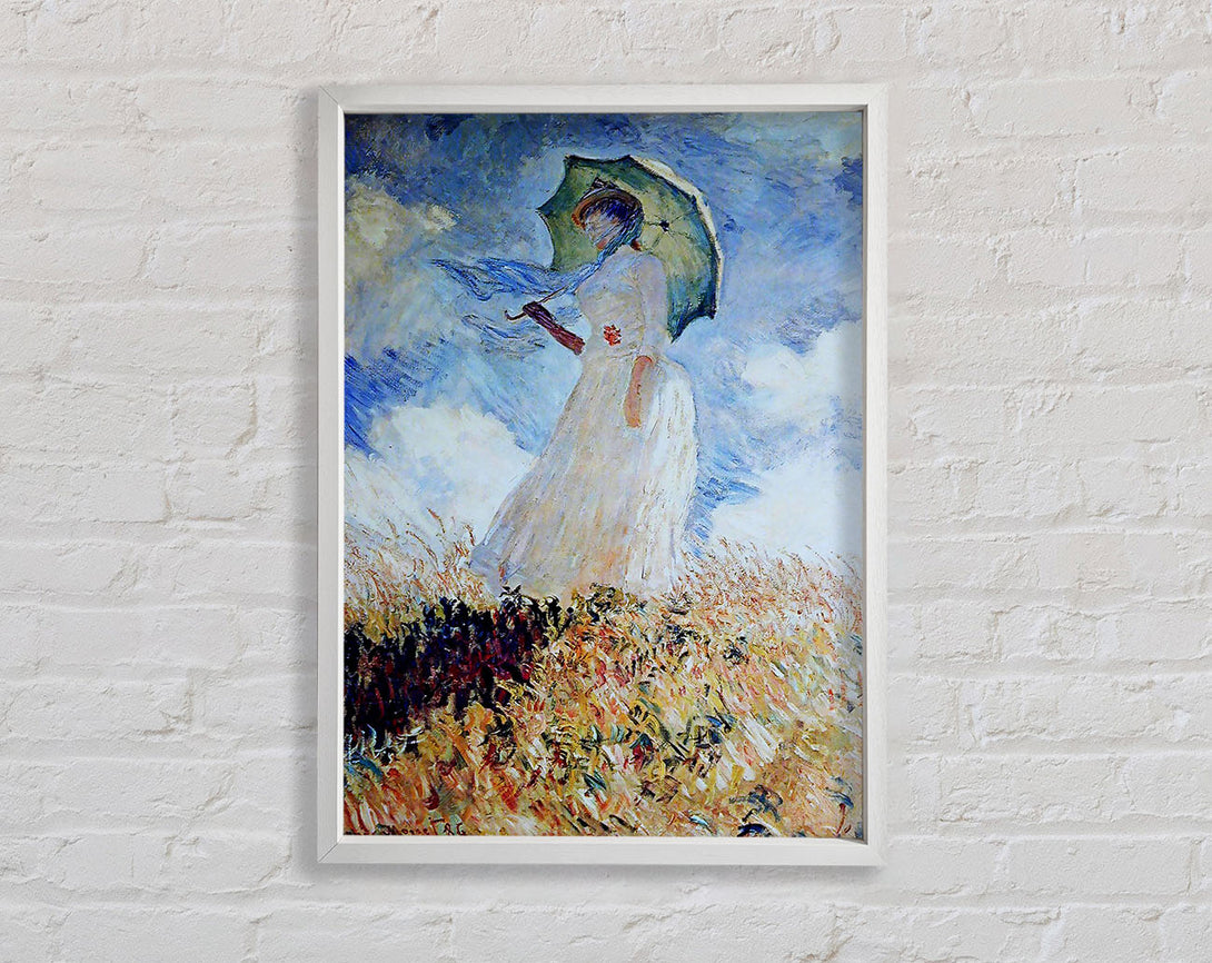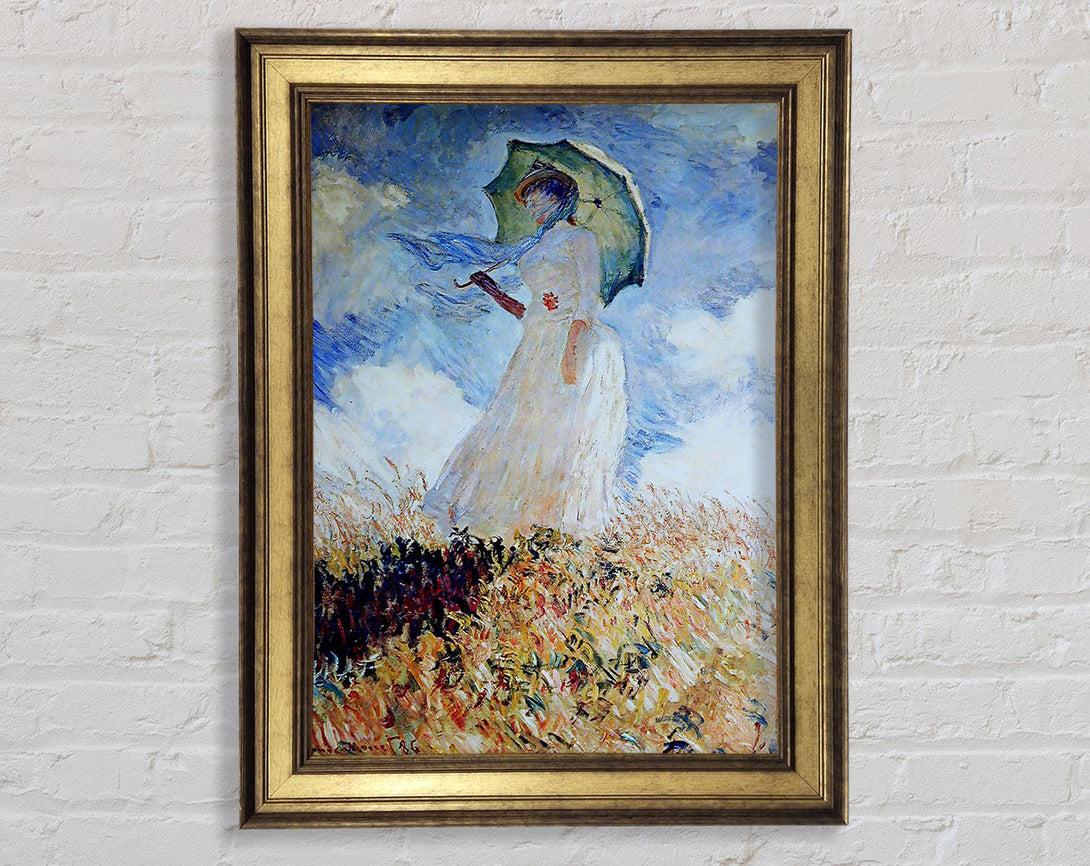 Monet Madame Monet Umbrella-gerahmter Druck, in mehreren Rahmenfarben erhältlich. Fertig zum Aufhängen aus der Schachtel und handgefertigt im Vereinigten Königreich.